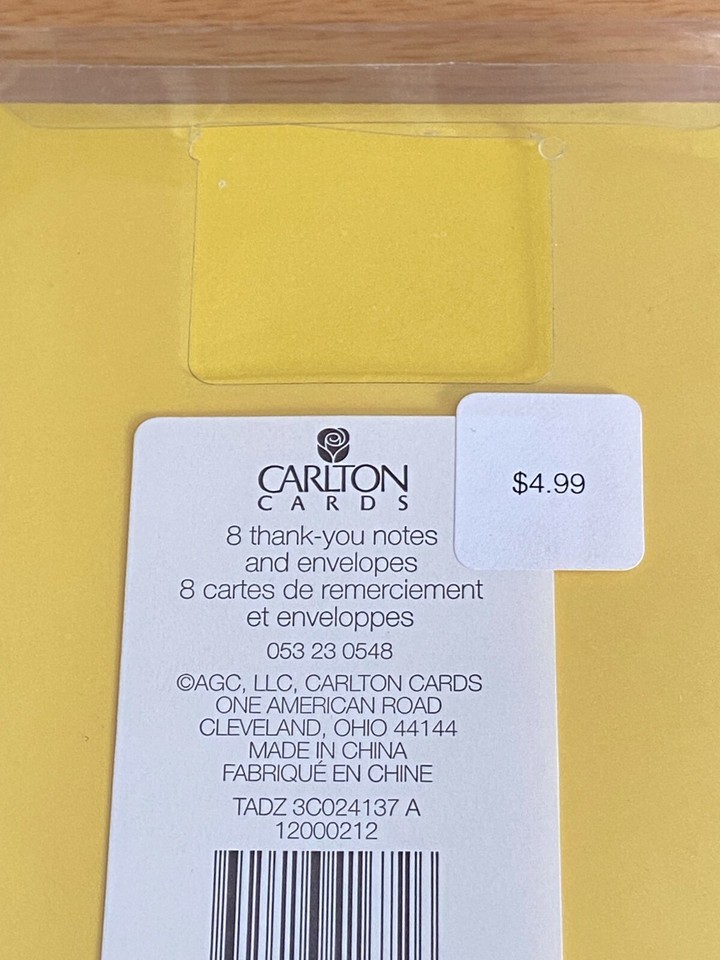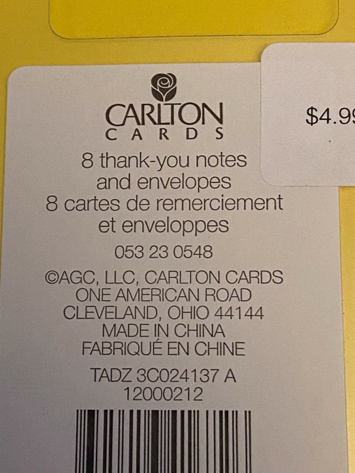 1 Pack of 8 Thank You Cards/Envelopes Carlton Cards *NEW* ccc1