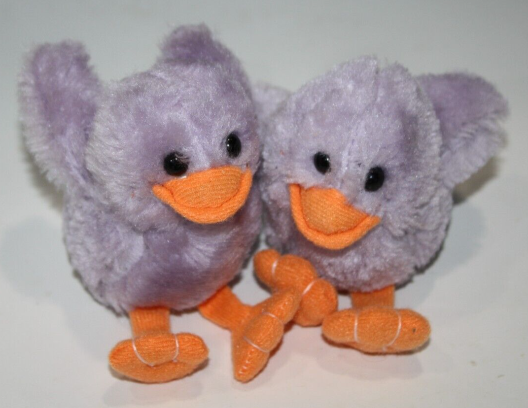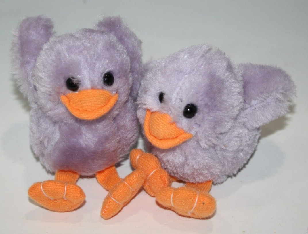 (2) Oriental Trading, Purple/Lavender and Orange Plush, Ducks, 4" Easter Chicks, Mini, Soft Toy, Stuffed Animal, Set of 2