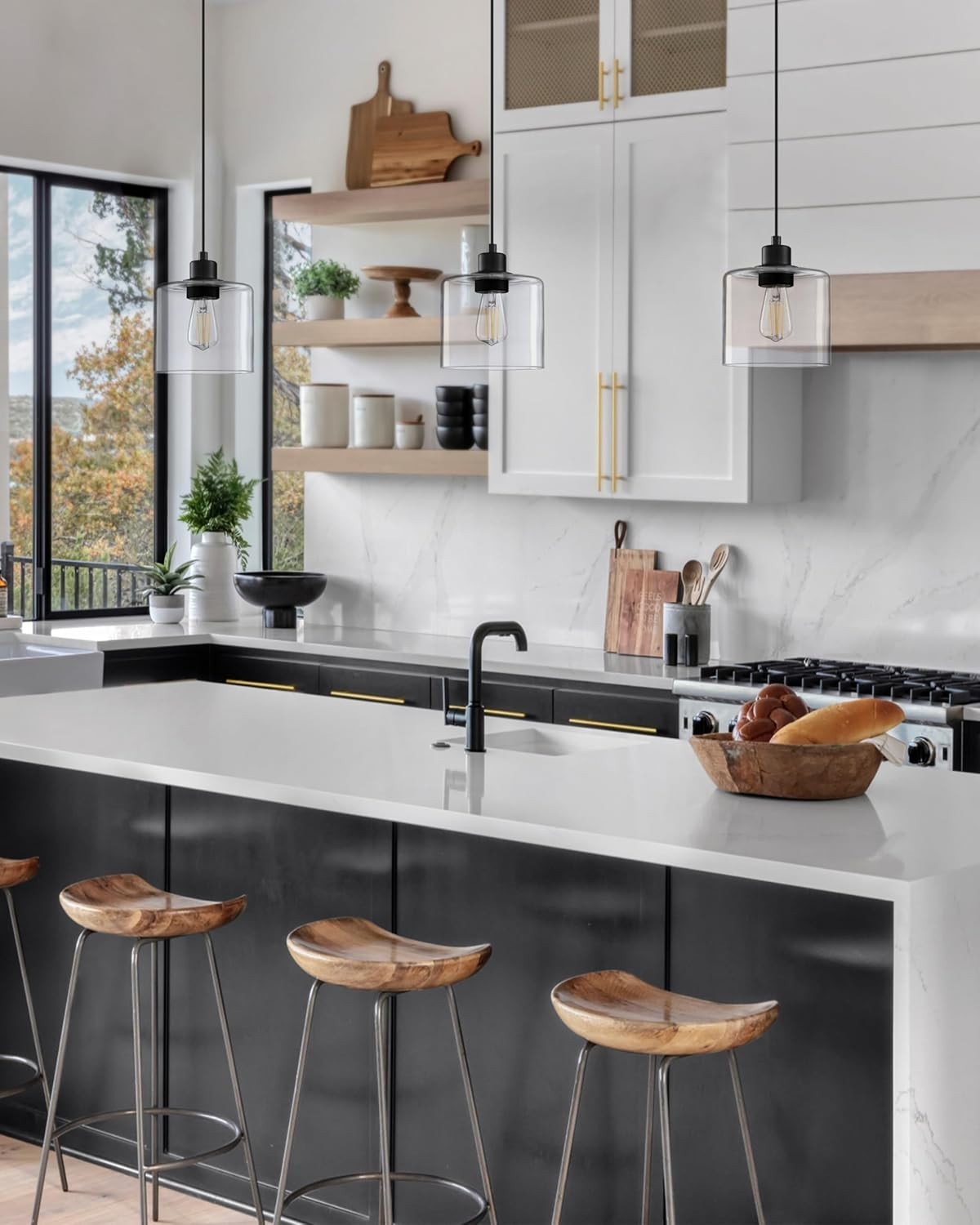 3. Glass Pendant Light - Perfect for Your Space - Clear Glass Black Finish Pendant Light are suitable for a variety of spaces, from rustic chandeliers in the kitchen to dining rooms, bars, kitchen countertops, above sinks, living spaces next to bedrooms, dens, and bedrooms.