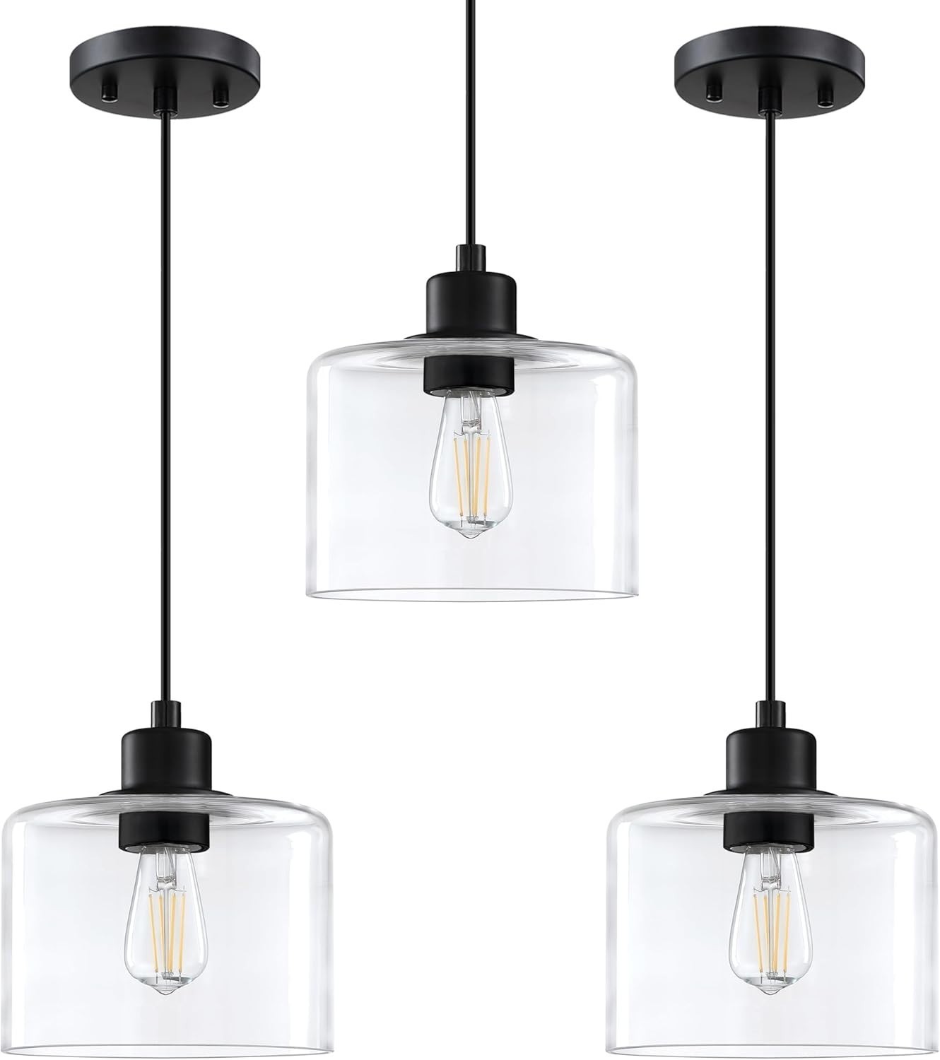 Seenming House 3 Pack Black Modern Kitchen Island Pendant Light 7.3 Inch Clear