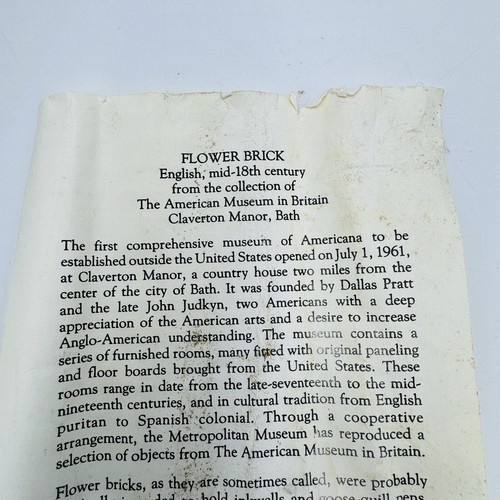 Antique Flower Brick English Mid-18th century Porcelain Floral Documentation