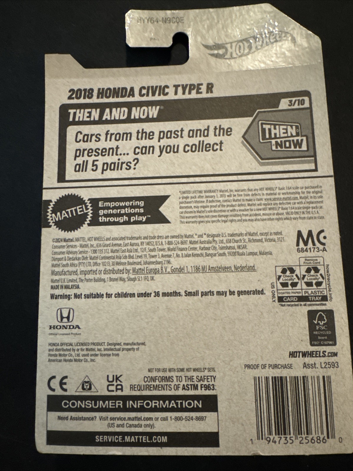 Hot Wheels 2025 Mainline E Case Then And Now 2018 Honda Civic Type R Red 123/250