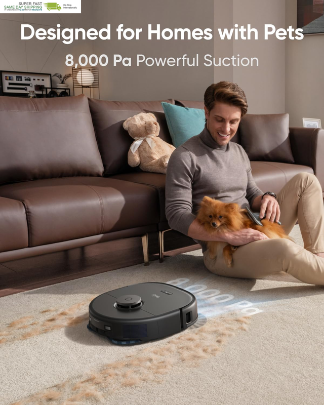 Pro Omni Robot Vacuum and Mop Combo, 8,000 Pa Suction, Dual Mops with 12 Mm Auto