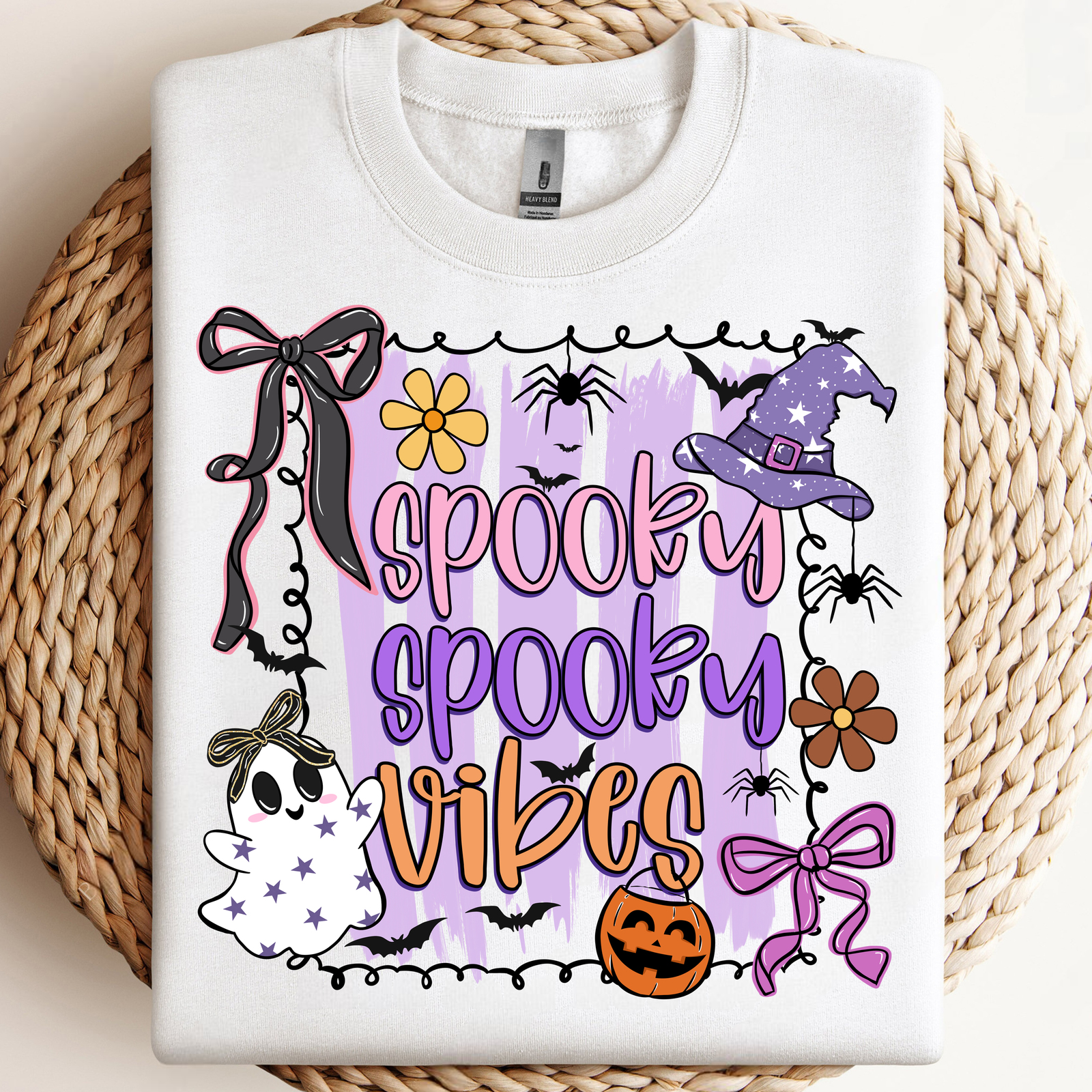 Spooky Vibes PNG, Preppy Halloween Coquette Bow PNG, Girly Halloween PNG Design