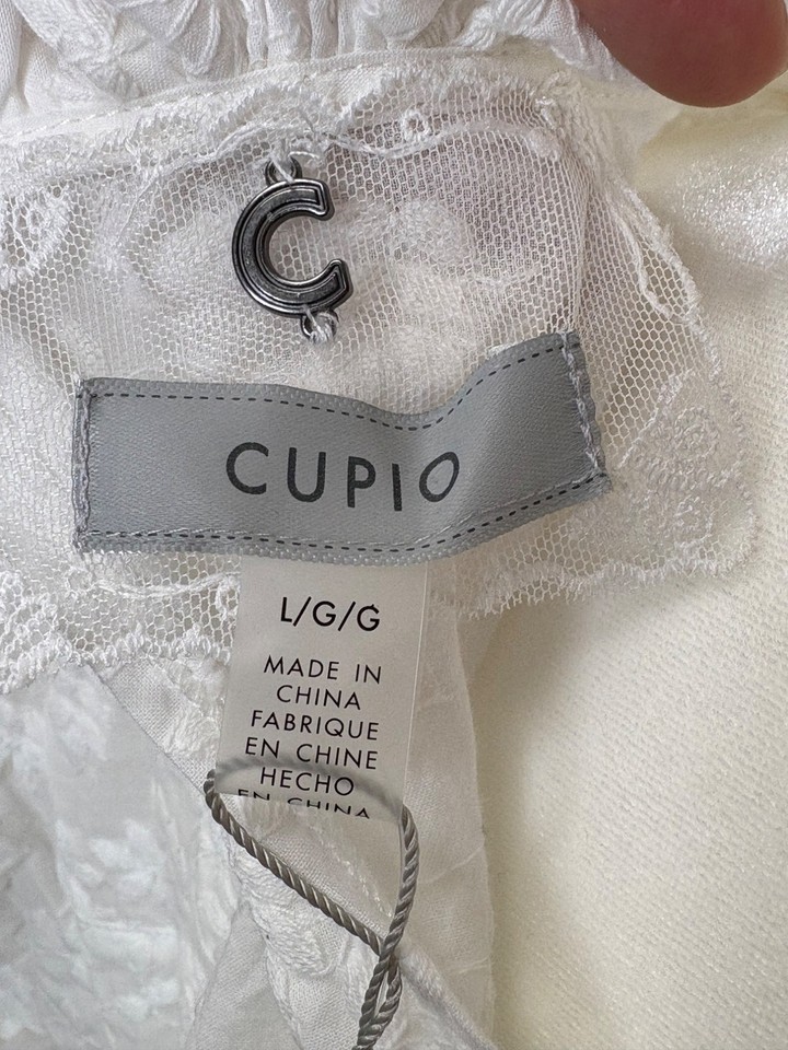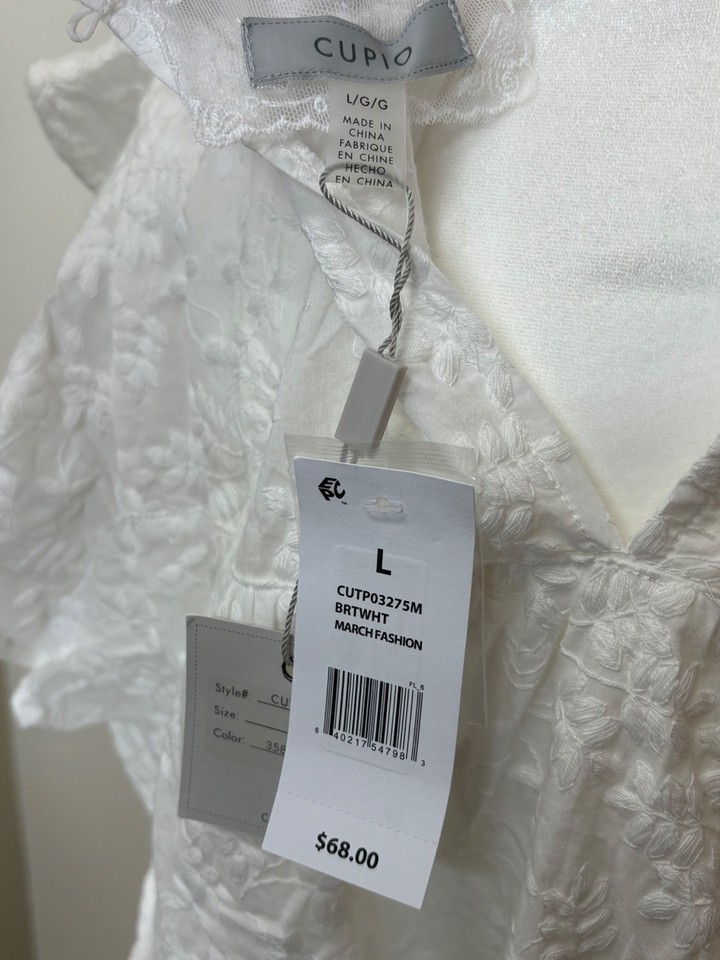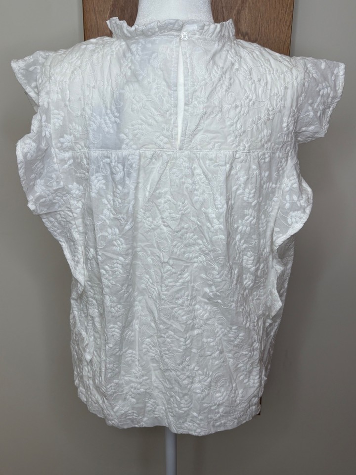 CUPIO White Floral Jacquard Sleeveless Ruffle Neck Babydoll Top Sz L Summer New