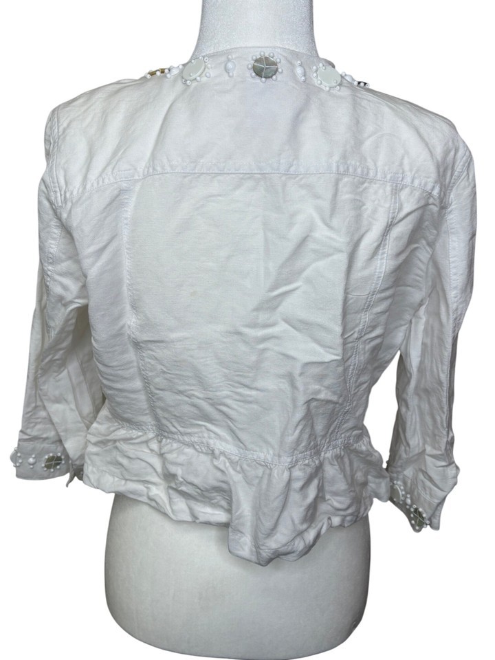 Ruby Rd. Womens White LinenBlend Jacket Peplum Sz 12 Classy Versatile Angelcore