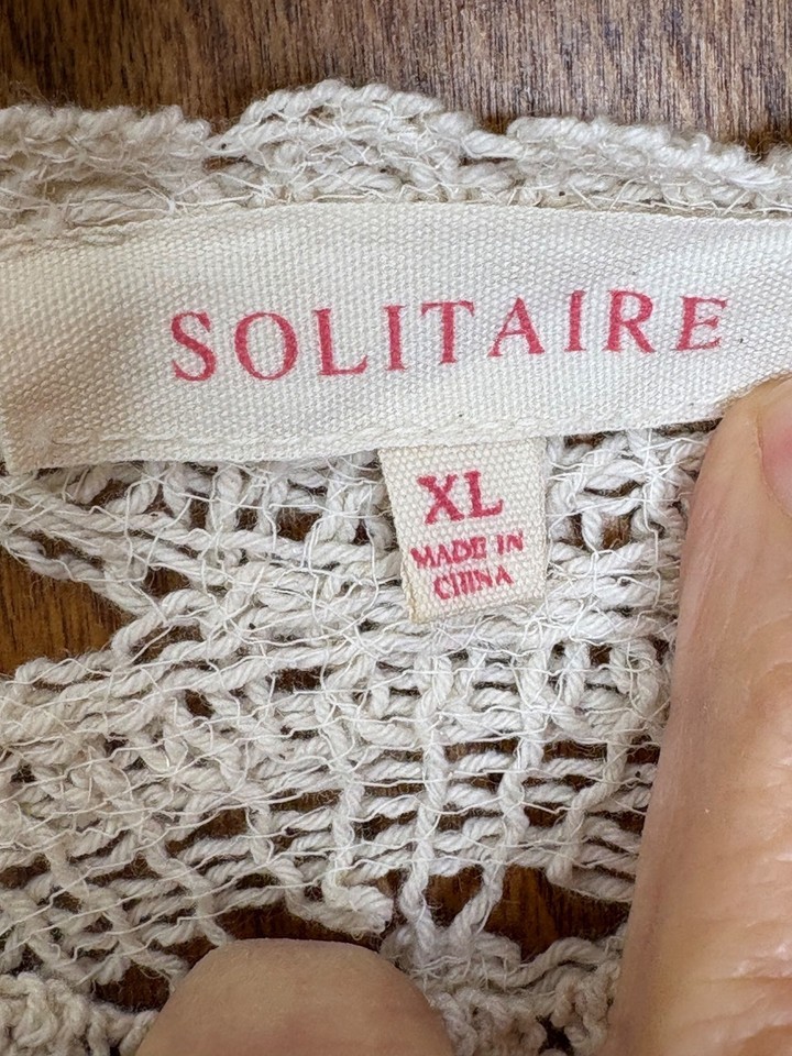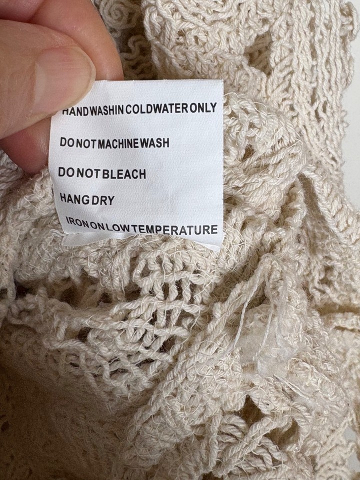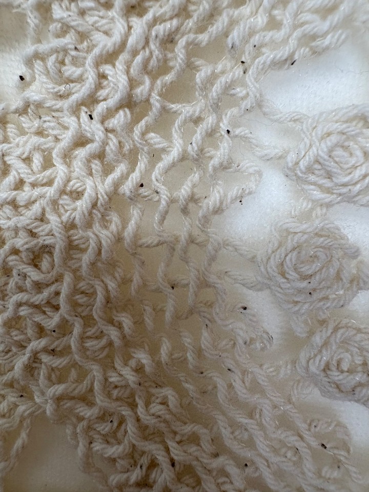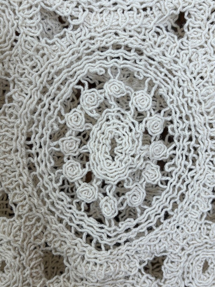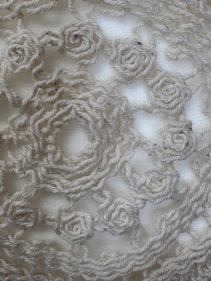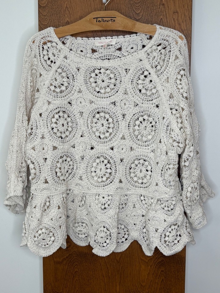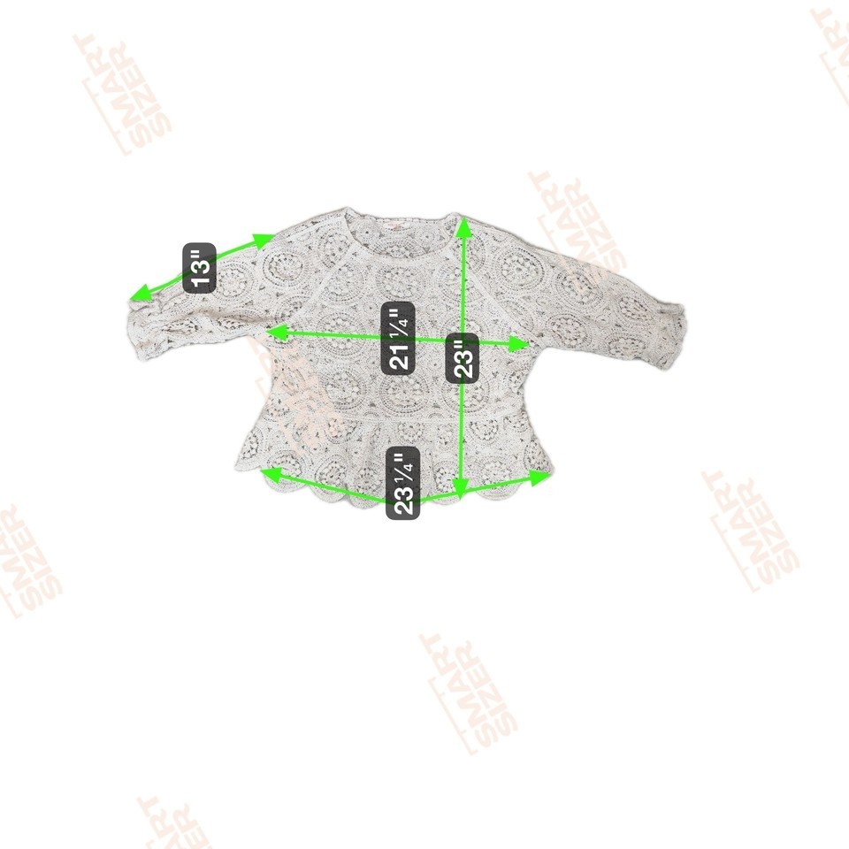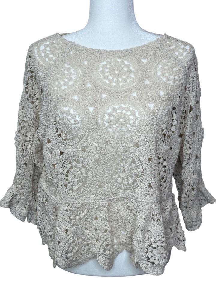 Cream Crochet Peplum Sweater Top Feminine Romantic XL-L See Through Cottage Core