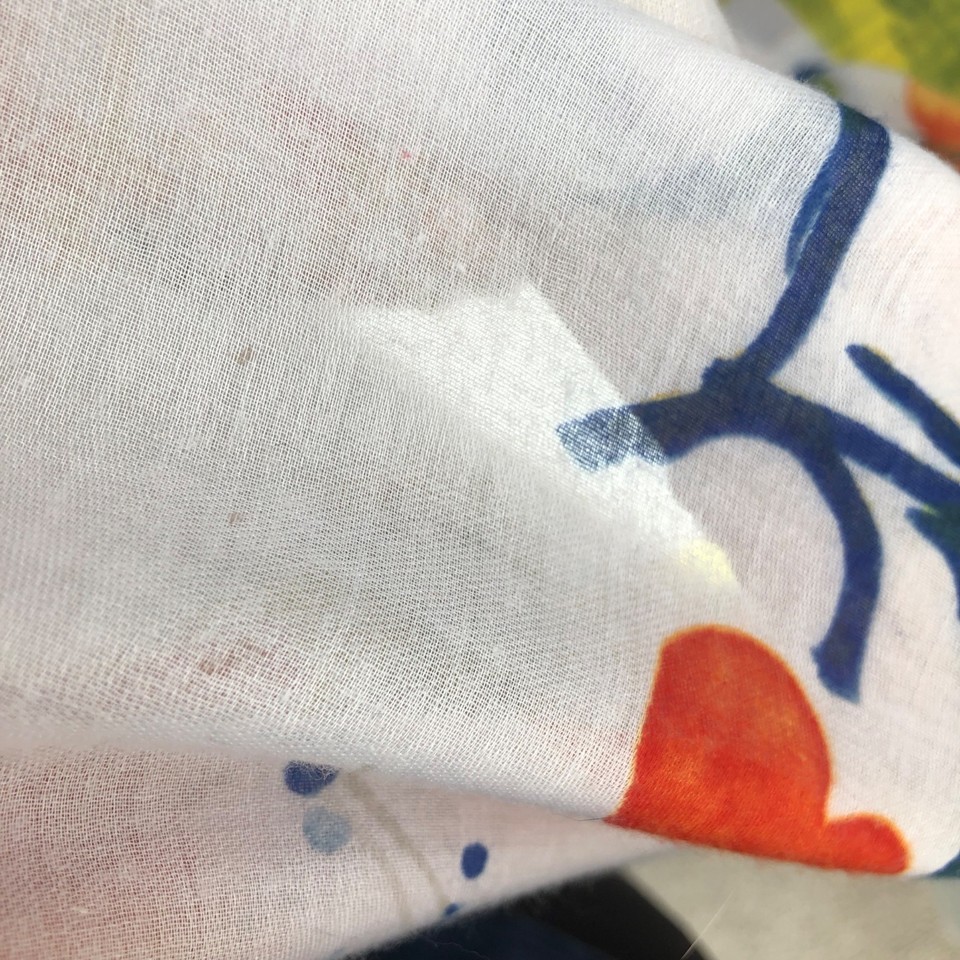 NOTE: Tiny, fleabite sized snag near shoulder. A couple of very small spots in the same area but blends in with print. SEE PHOTOS