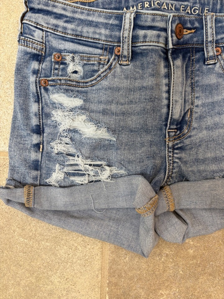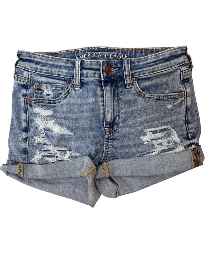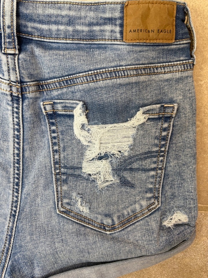 American Eagle Distressed Denim Shorts Sz 4 Next Level Stretch Festival Beach