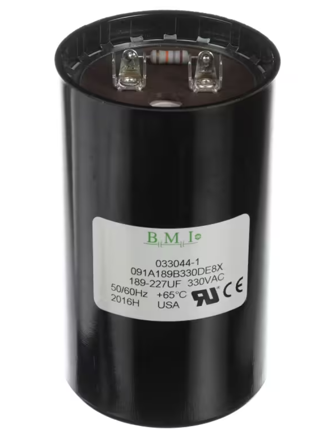 Taylor 091A189B330DE8X, 033044-1 Start Capacitor, 189?227uF, 330V, 50/60Hz ? Round is a genuine OEM capacitor engineered to deliver high starting torque for motors used in Taylor commercial equipment. With a capacitance range of 189?227 microfarads (uF) and a 330V AC rating, this component ensures dependable startup performance, especially in heavy-duty refrigeration and dispensing systems. Its round metal housing and quick-connect terminals make it a durable and easy-to-install solution for service professionals.
