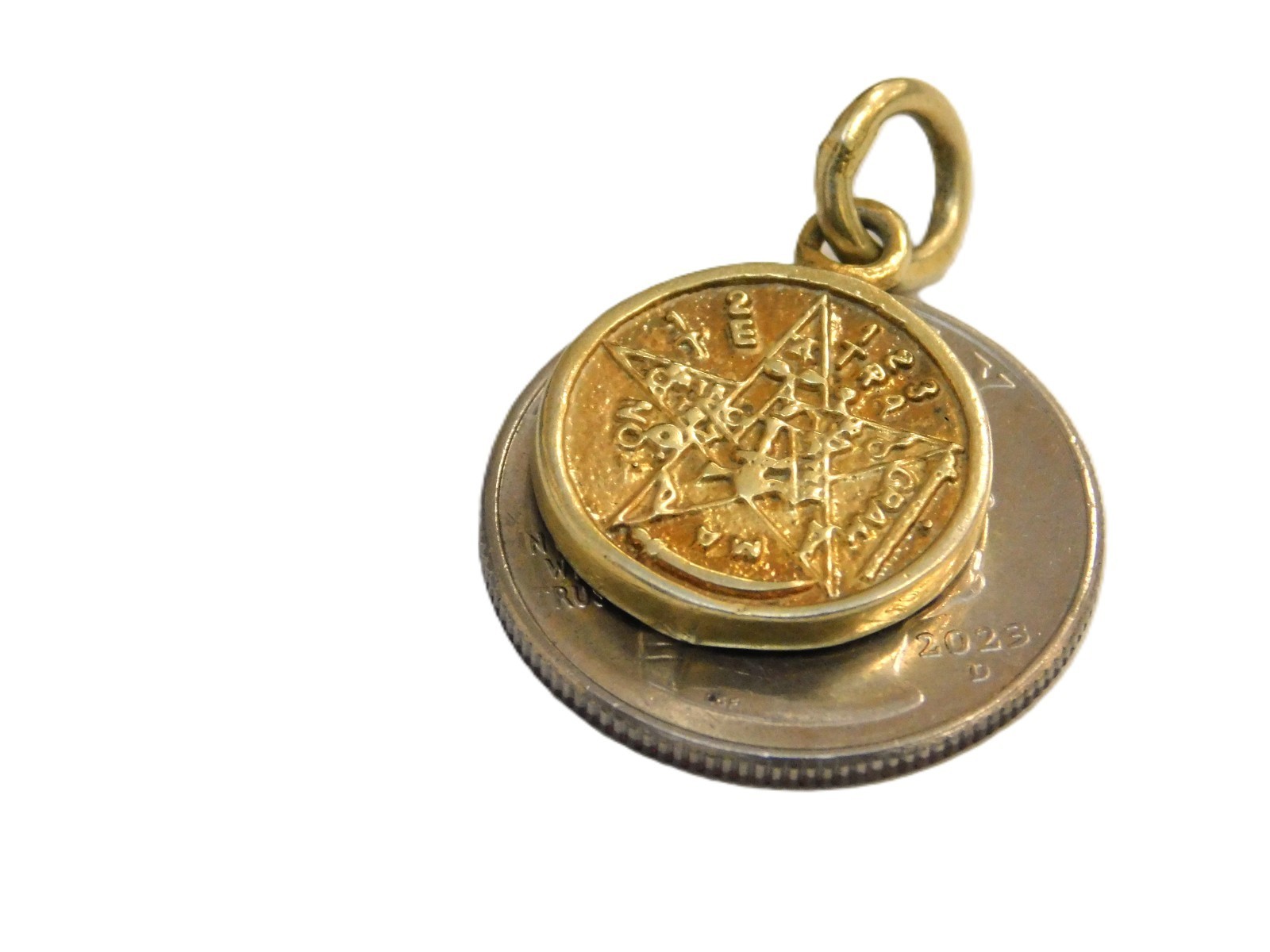 Authenticity Guarantee 14k Yellow Gold 2- Sided medallion Tetragrammaton & S...