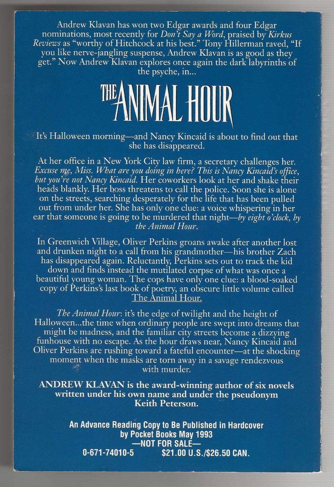 Andrew Klavan ANIMAL HOUR First edition Advance Readers Copy Horror Biblio Novel