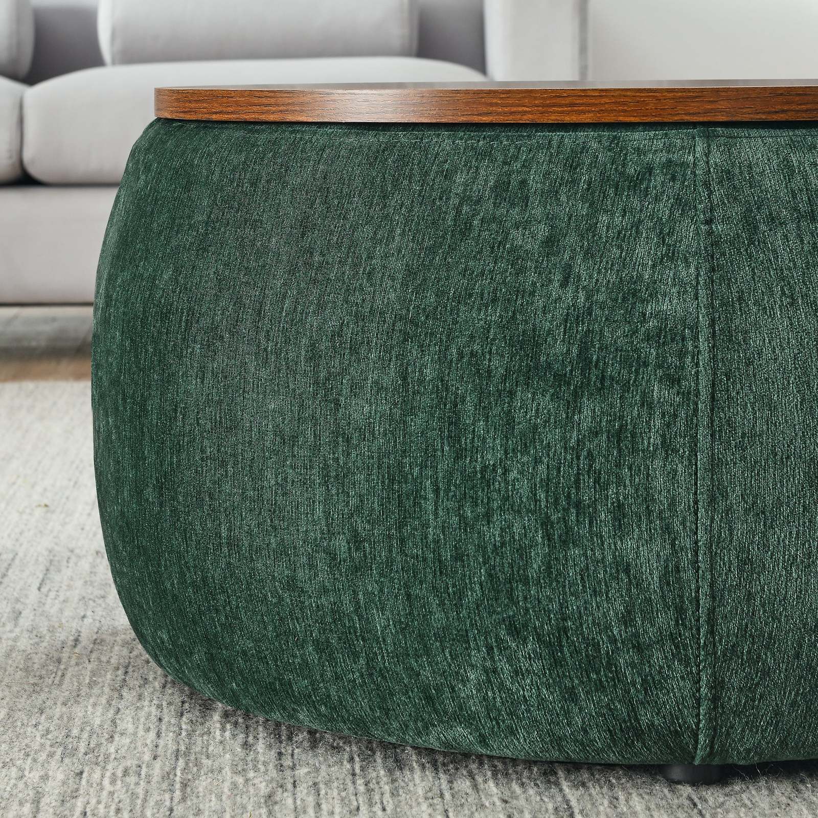 Round Storage Ottoman with Removable Top - Green Modern Classic