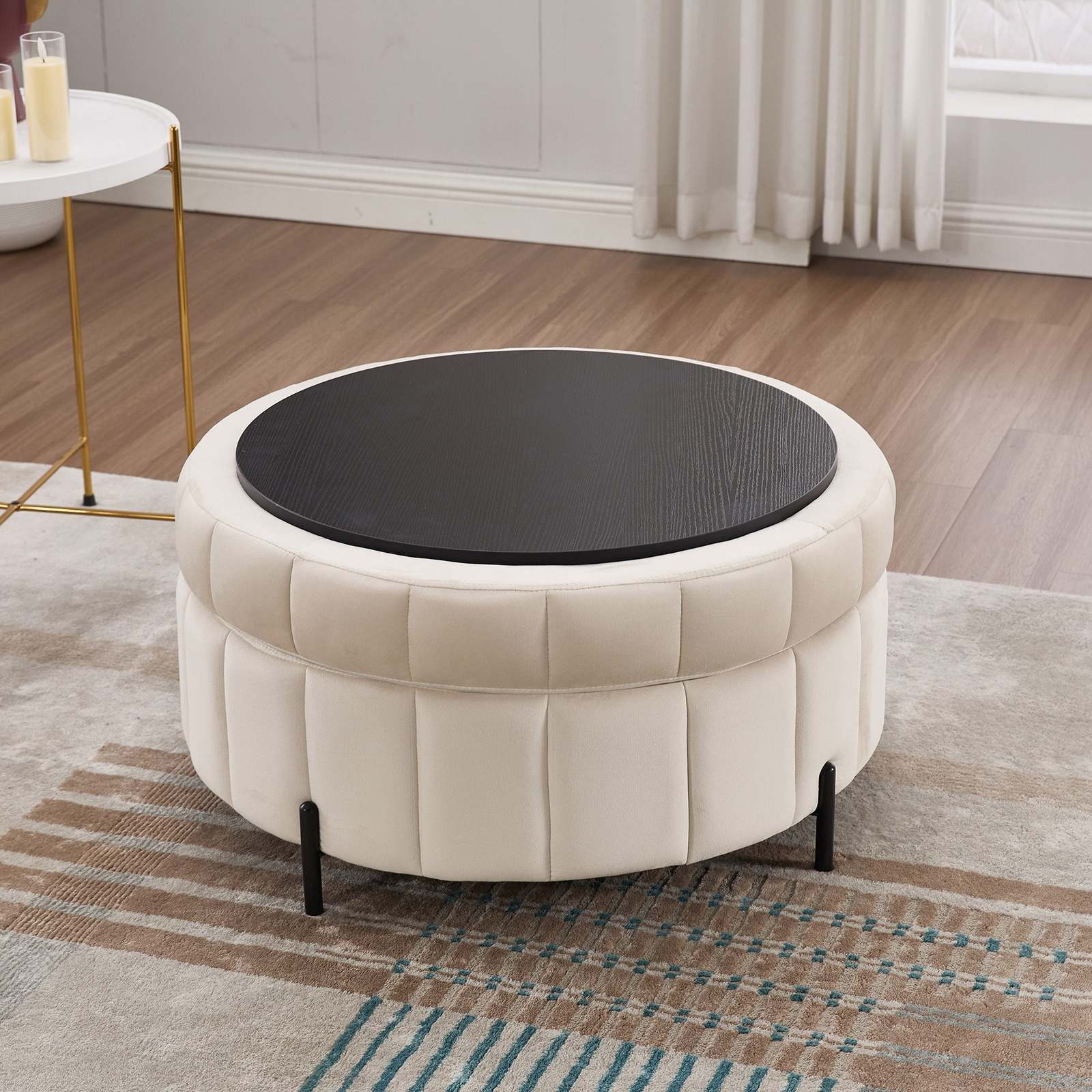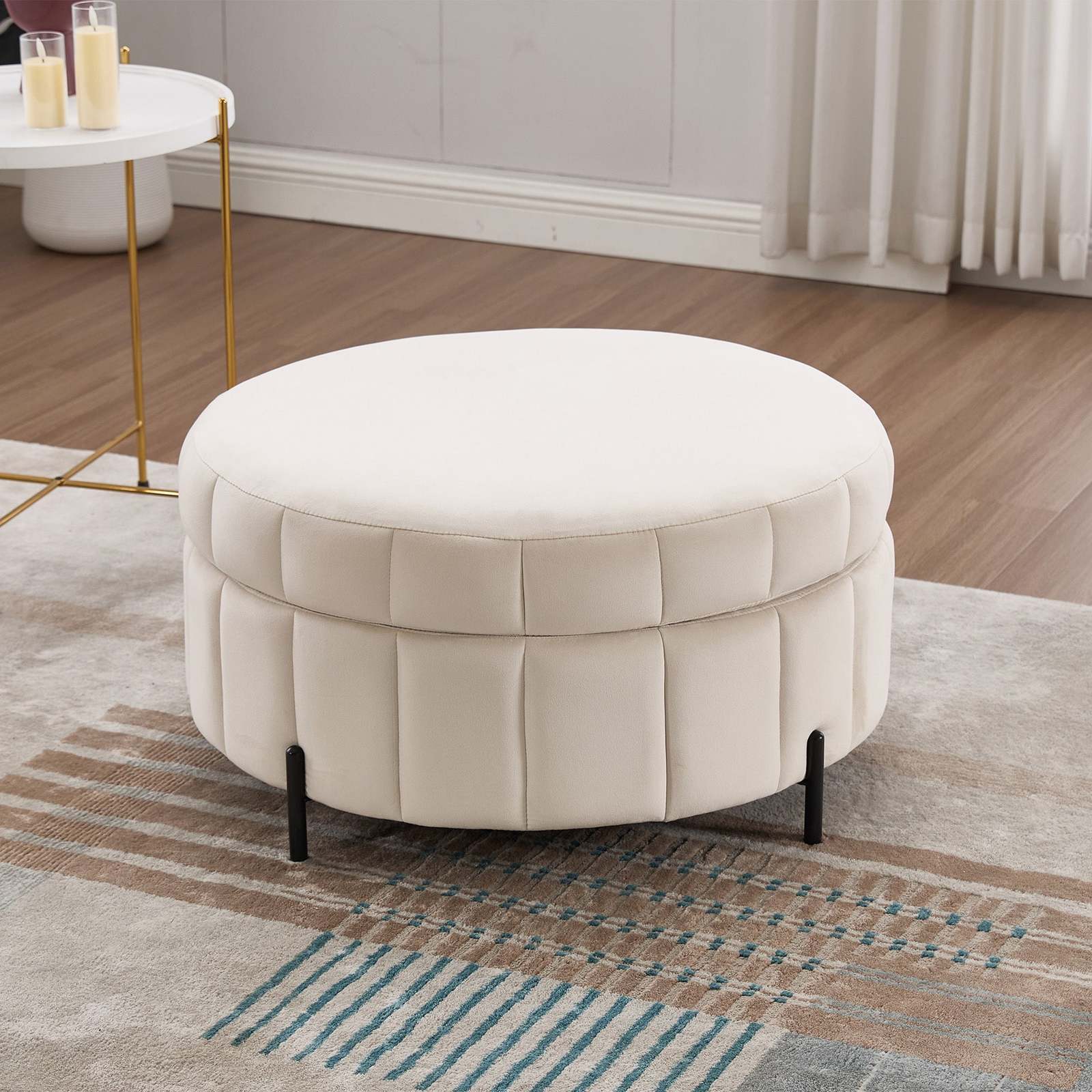 Beige Velvet Round Storage Ottoman with and 50 similar items