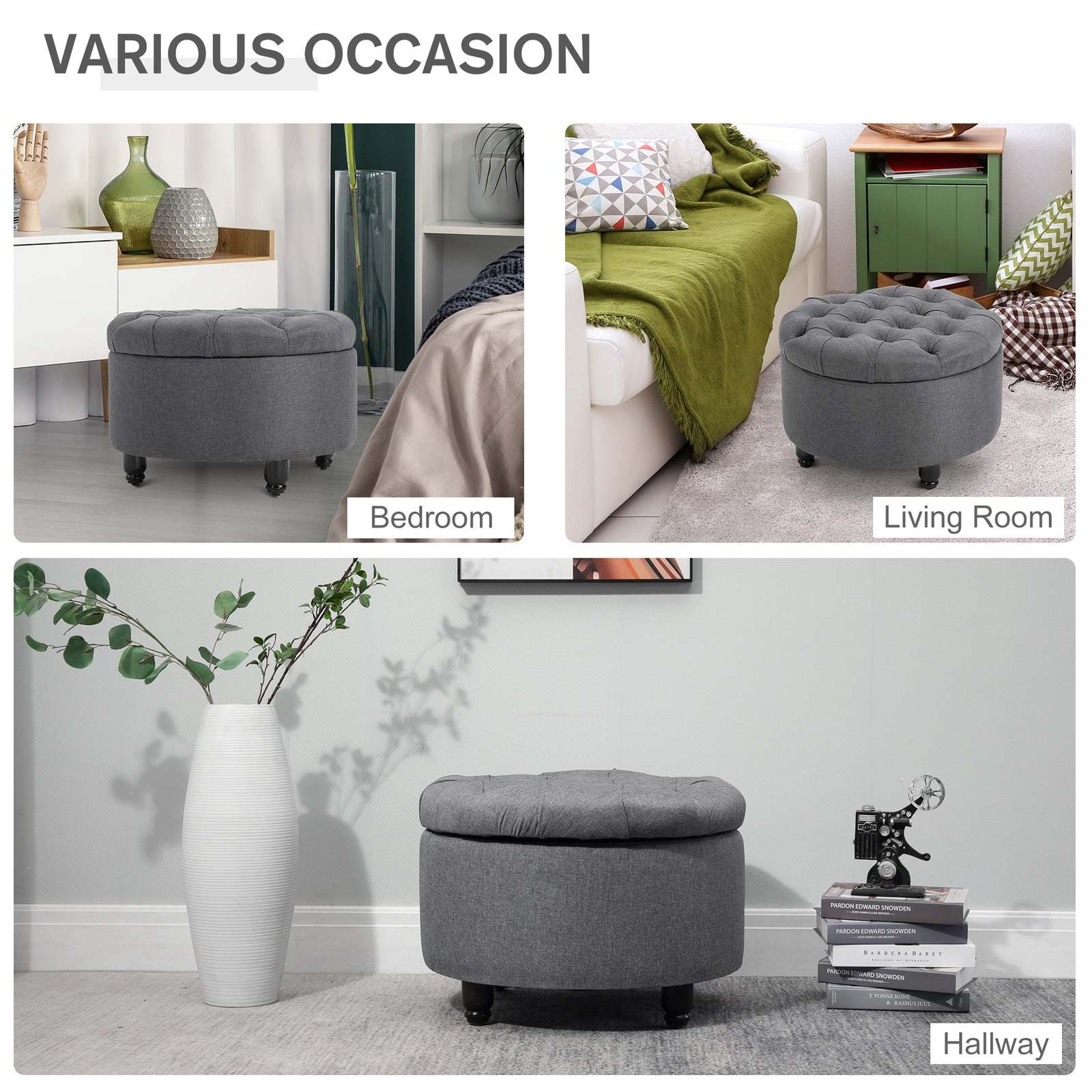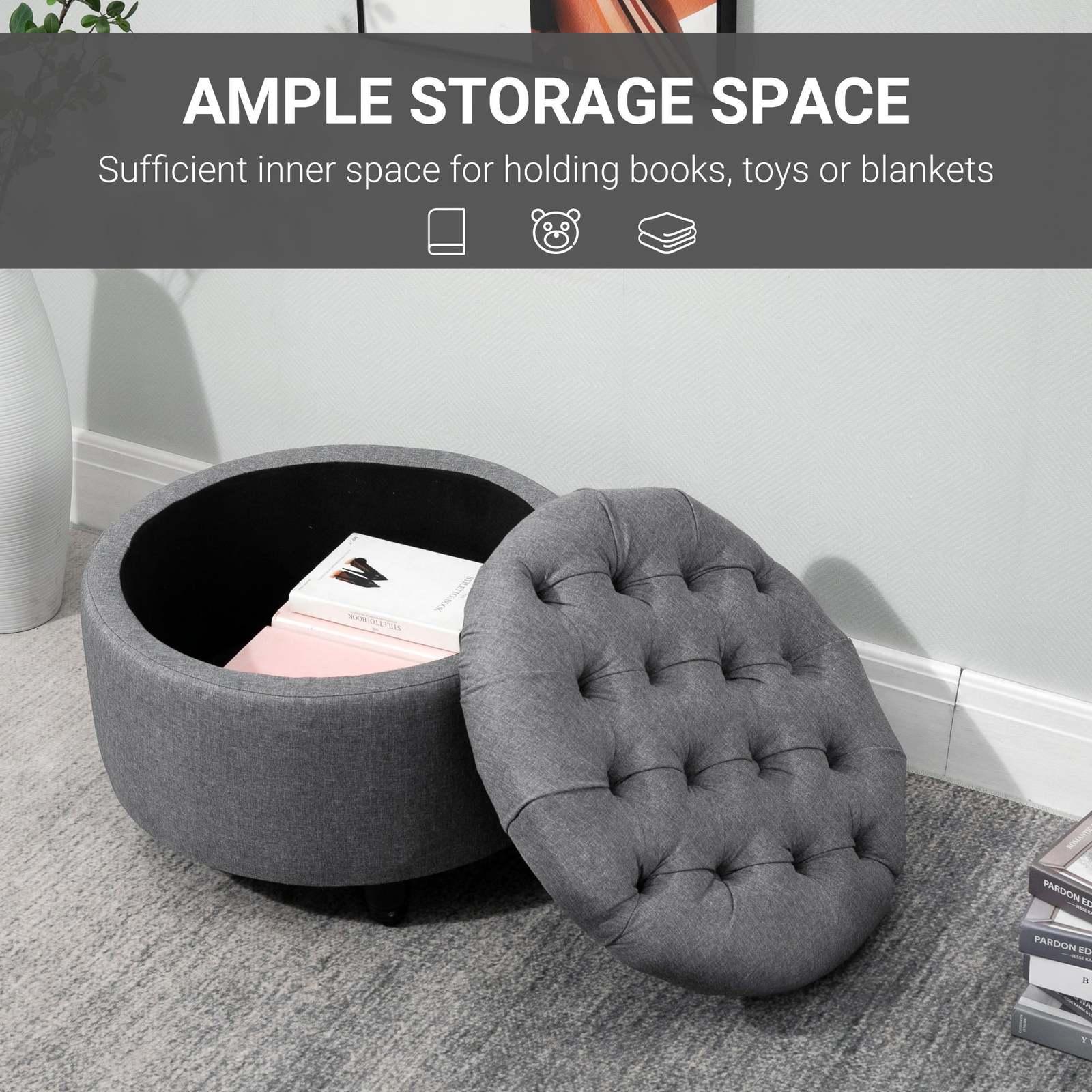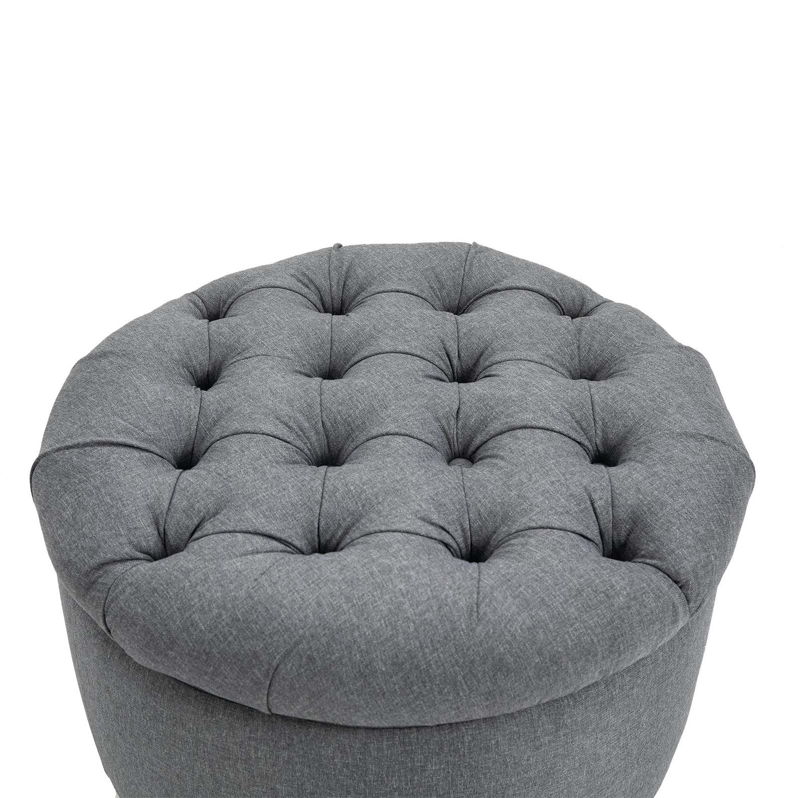 HOMCOM Round Grey Fabric Storage Ottoman Tufted Footstool