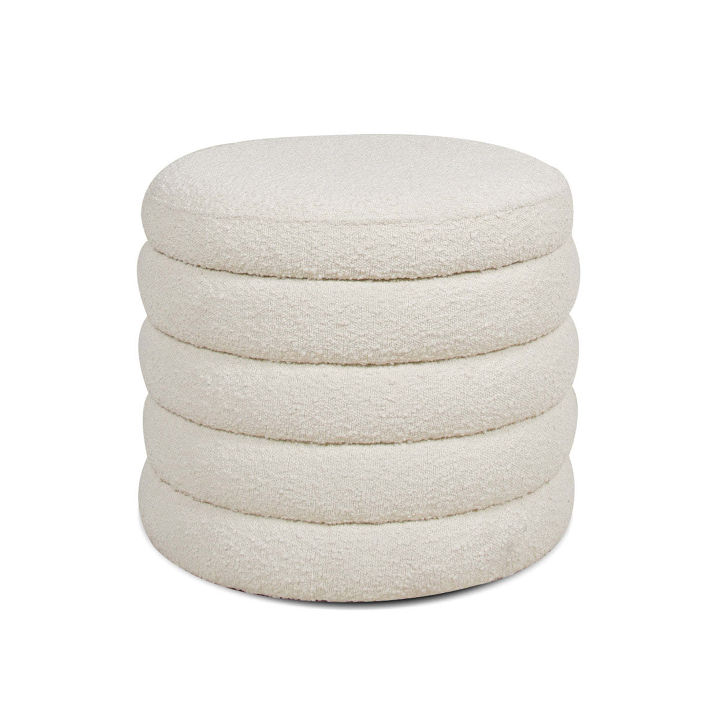 Fuji 19" Ivory White Boucle Oversized Round Storage Ottoman