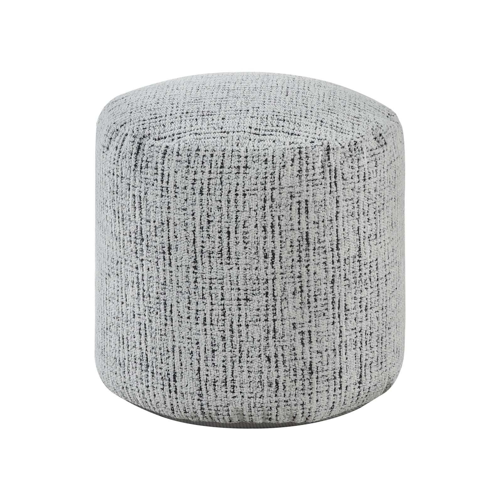 Whether the Aiken Collection serves to provide stylish accent to your home?s decor, convenient seating when the need arises, or as perfect place to put up your feet, the cylindrical accent pouf?s versatility of purpose makes it a convenient addition to your space. The pouf is covered in gradiated black and white chenille fabric upholstery.