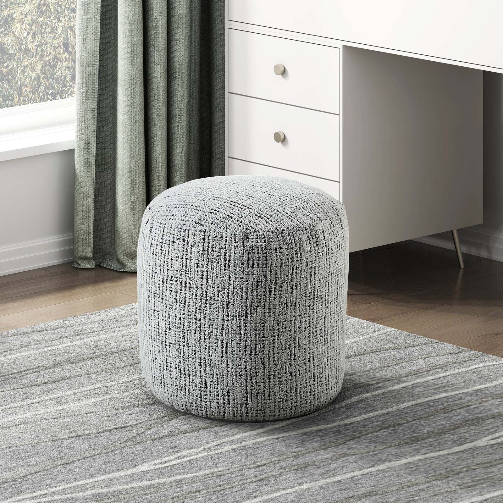 Modern Chenille Cylindrical Floor Pouf | Ottoman, Footstool, Non-Slip