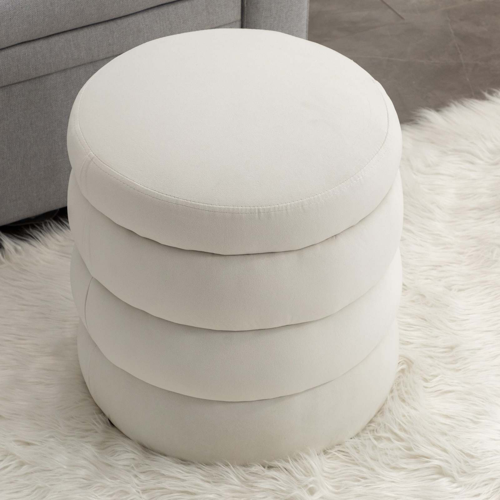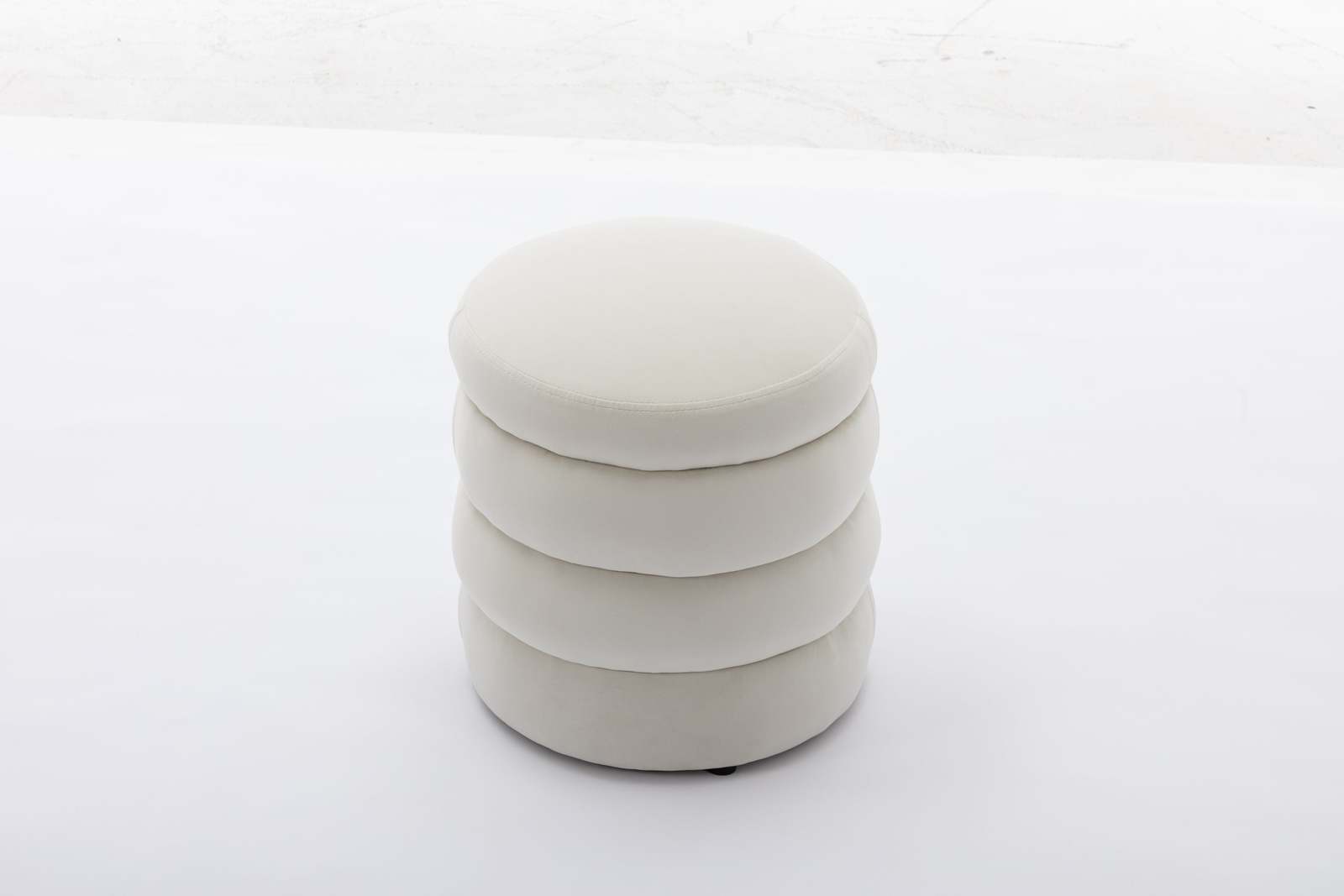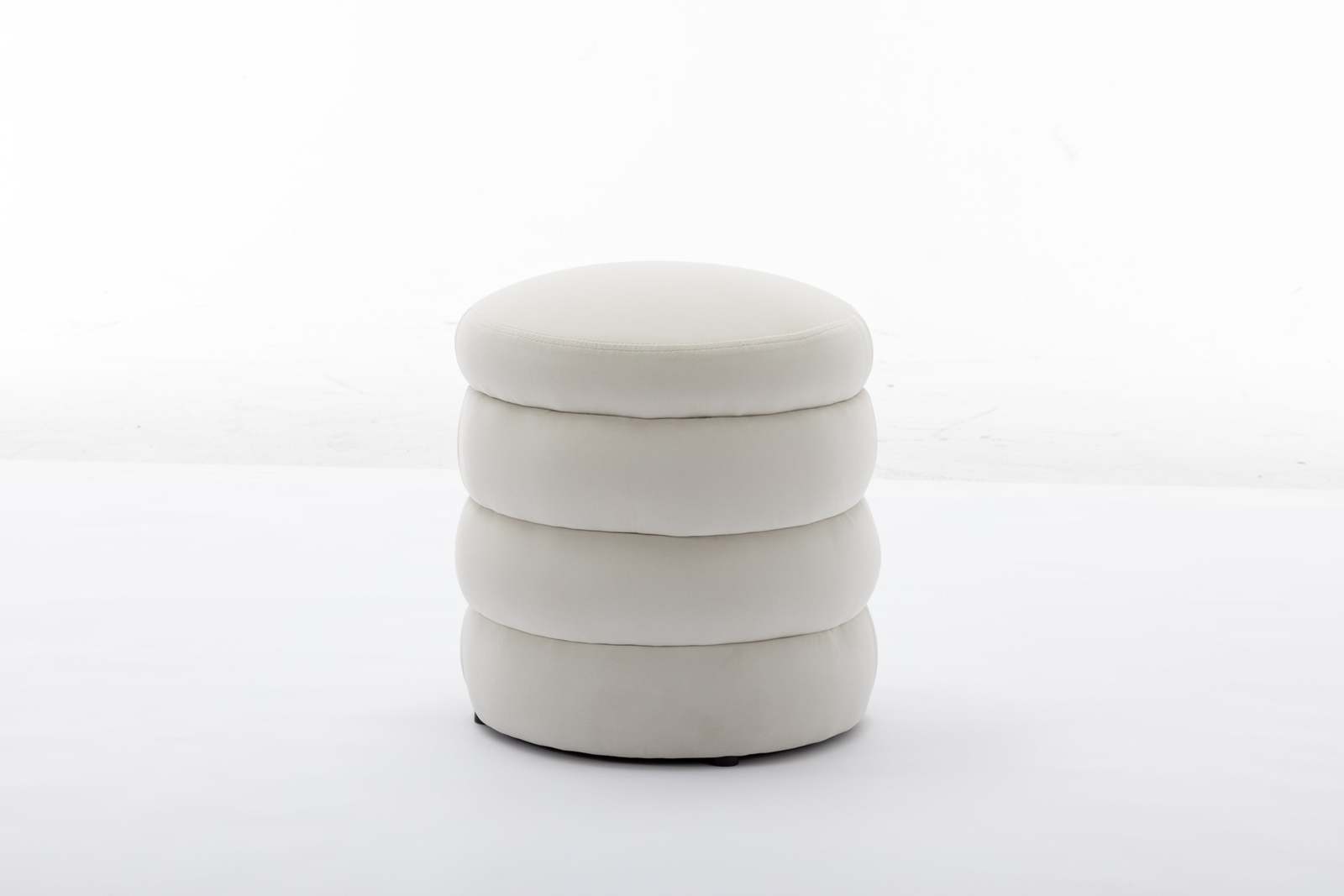 Ivory Soft Velvet Round Ottoman Footrest Stool