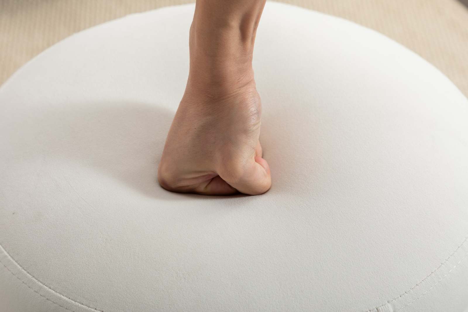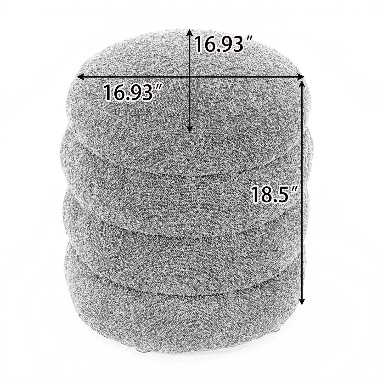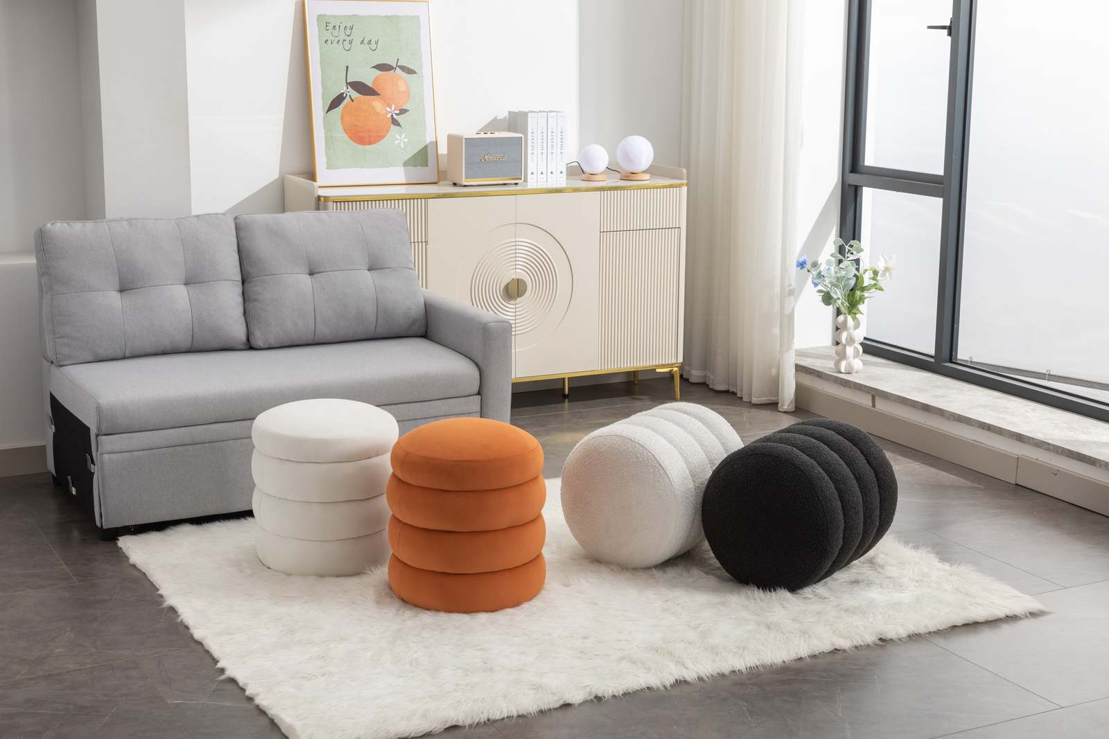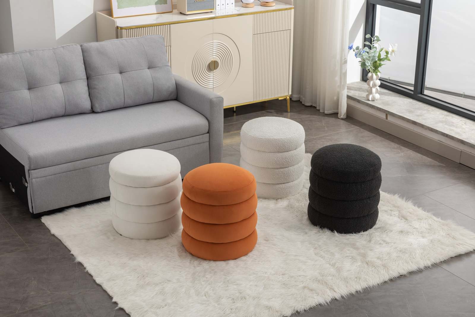 Ivory Soft Velvet Round Ottoman Footrest Stool