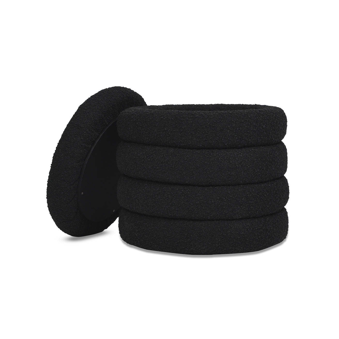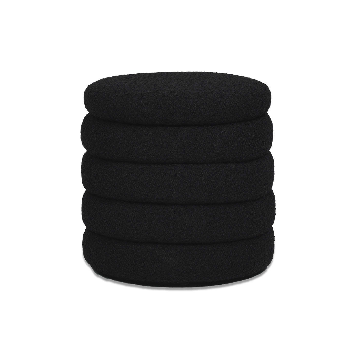 Fuji 19" Oversized Round Storage Ottoman - Ebony Black Boucle