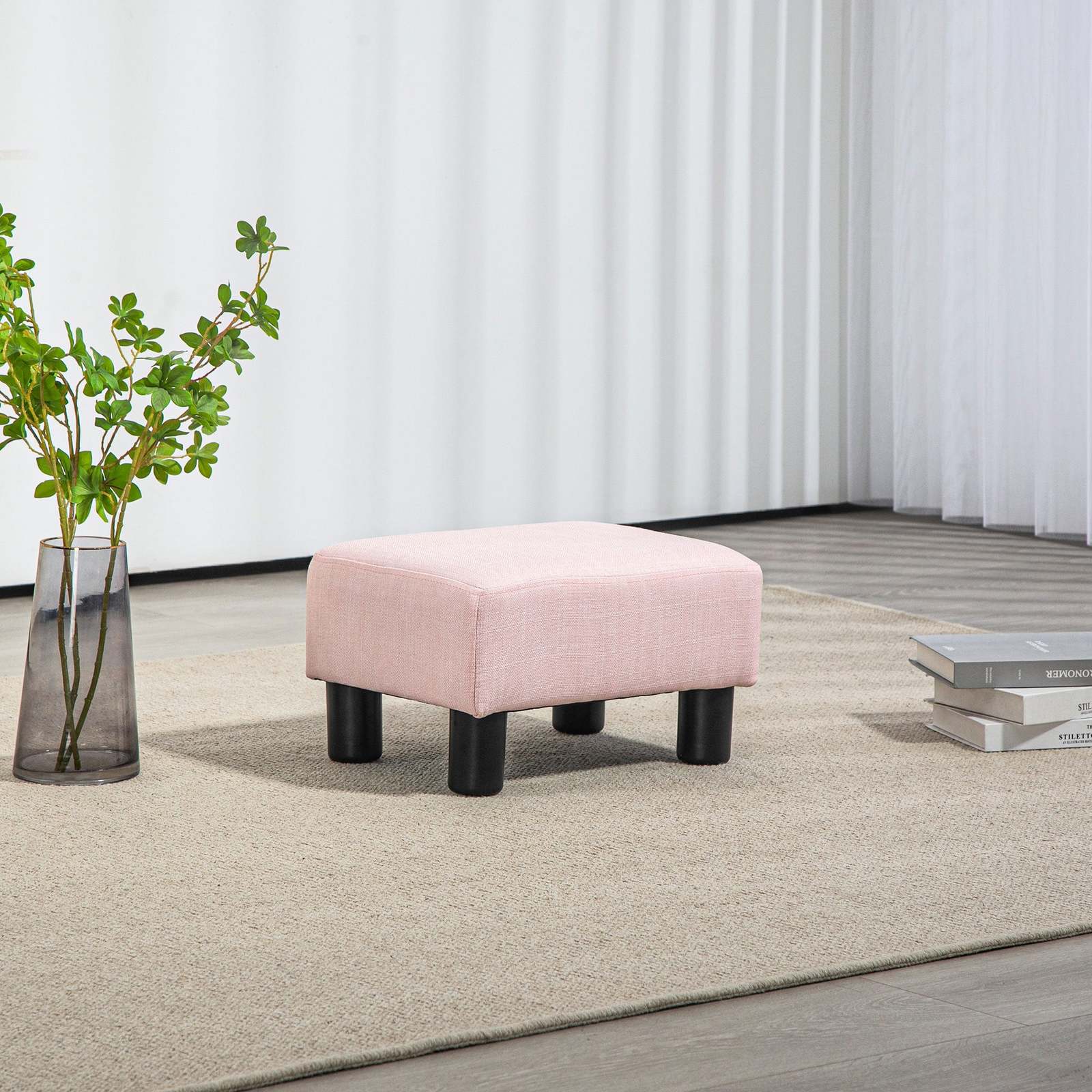 HOMCOM Pink Small Cube Ottoman Foot Rest Stool - Linen Upholstered