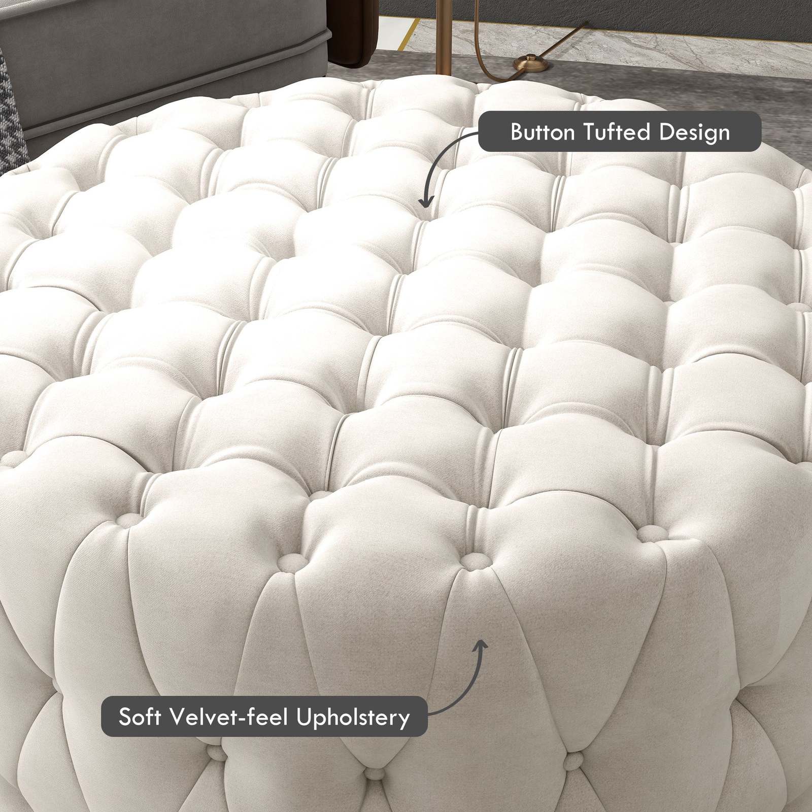 Elegant Design: This ottoman footrest has a button-tufted seat with delicate velvet-like upholstery, making it an excellent accent for any room.