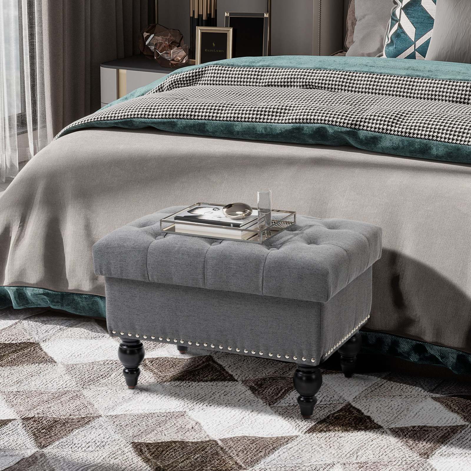 Elegant Design: This living room ottoman with storage has an attractive studded trim edging and tufted button top for a classic style that will elevate the decor in your home.