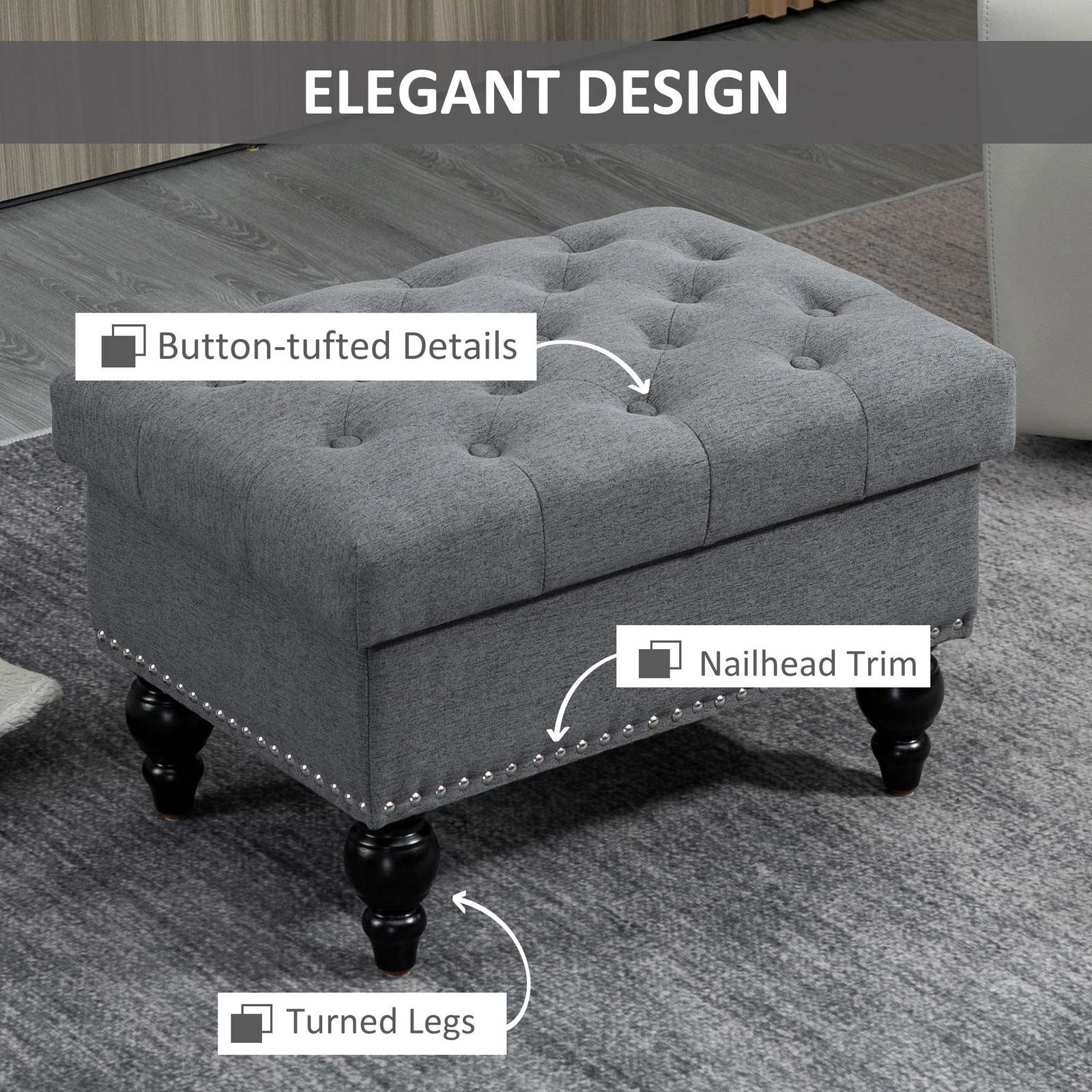HOMCOM Gray Storage Ottoman Bench: Footrest & Seat with Wood Legs