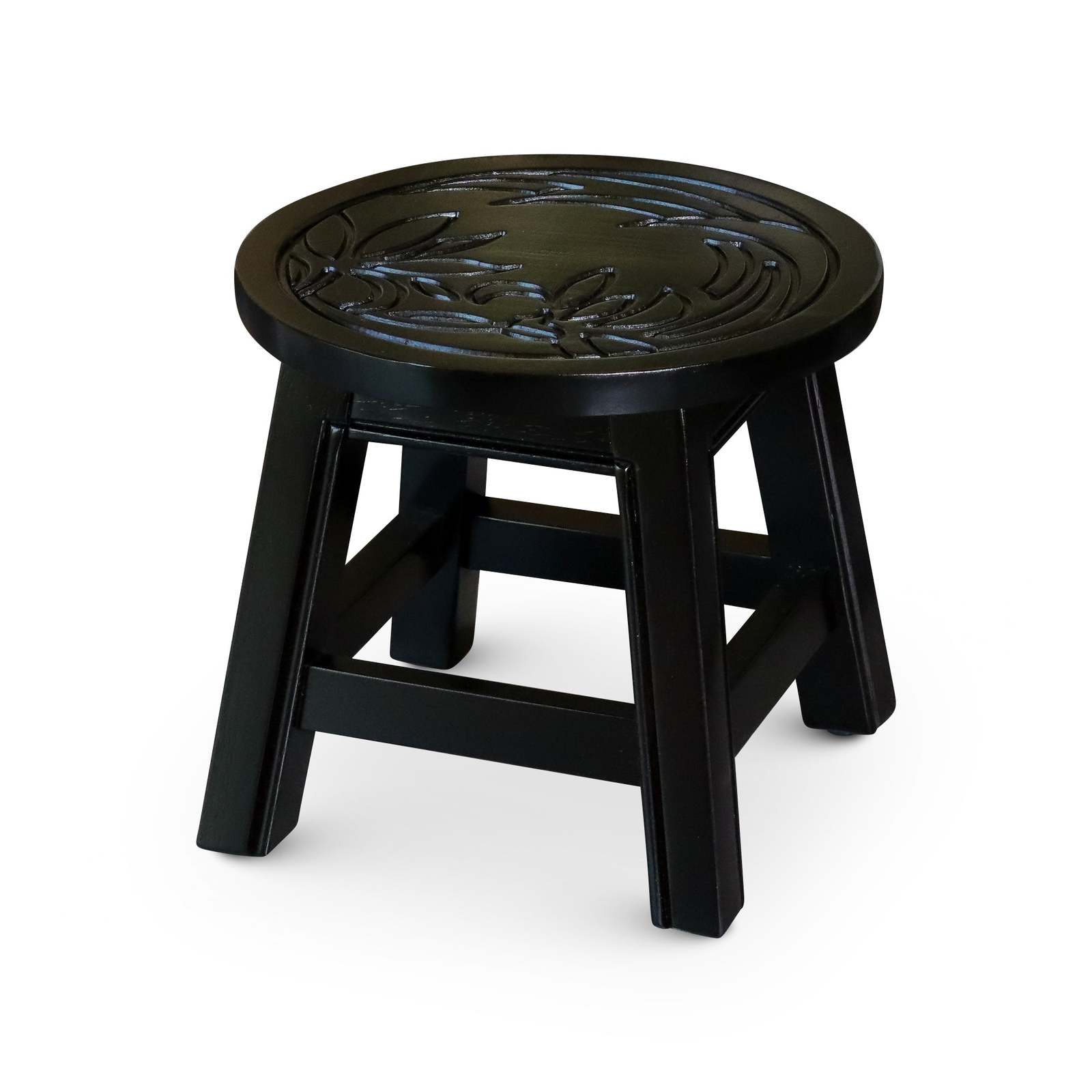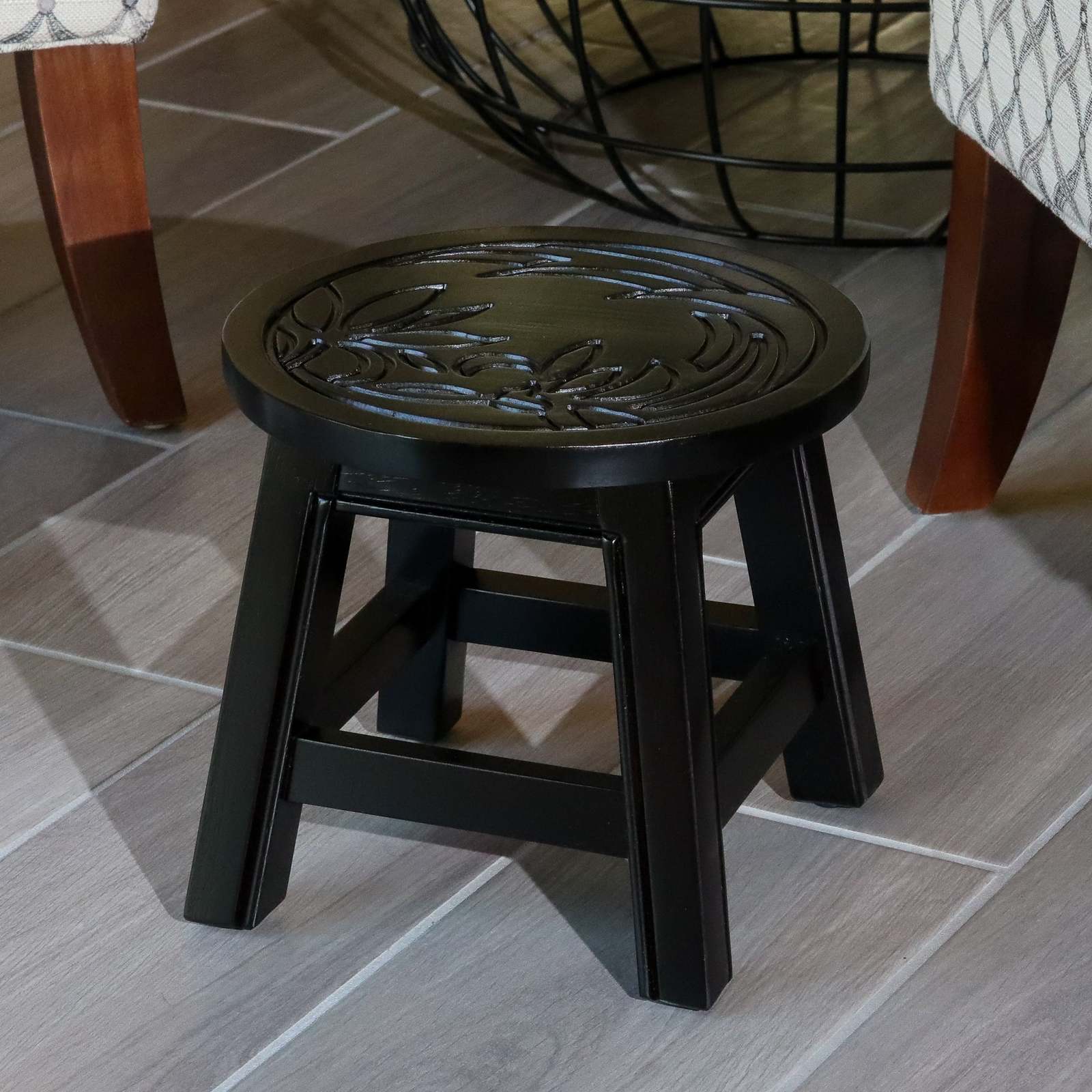Carved Wooden Step Stool - Floral Espresso Finish - Decorative