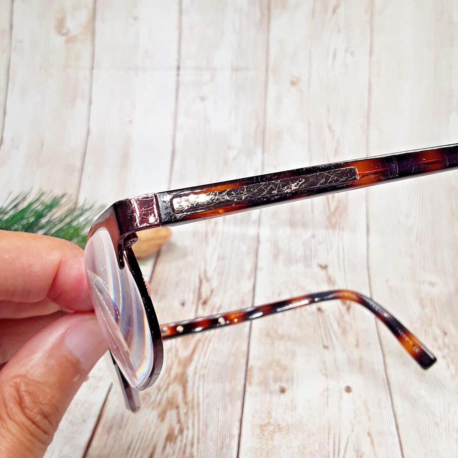 Frames: Frame in good condition. Arms have tiny scuffs/scratches; logos have rubbed off of both temples.