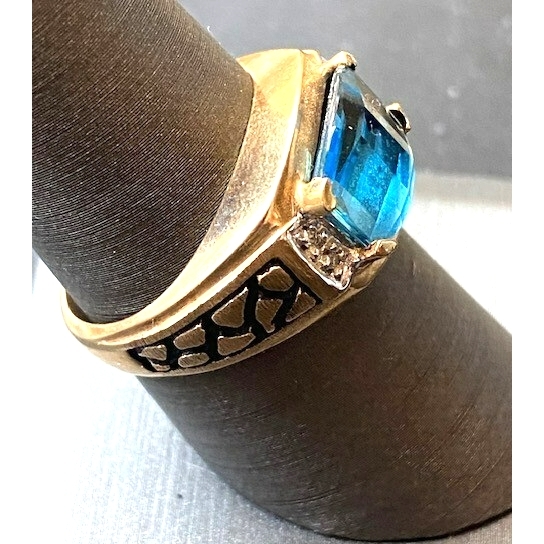 MEN'S YELLOW GOLD TOPAZ AND DIAMOND PINKY RING SIZE 8 SKY