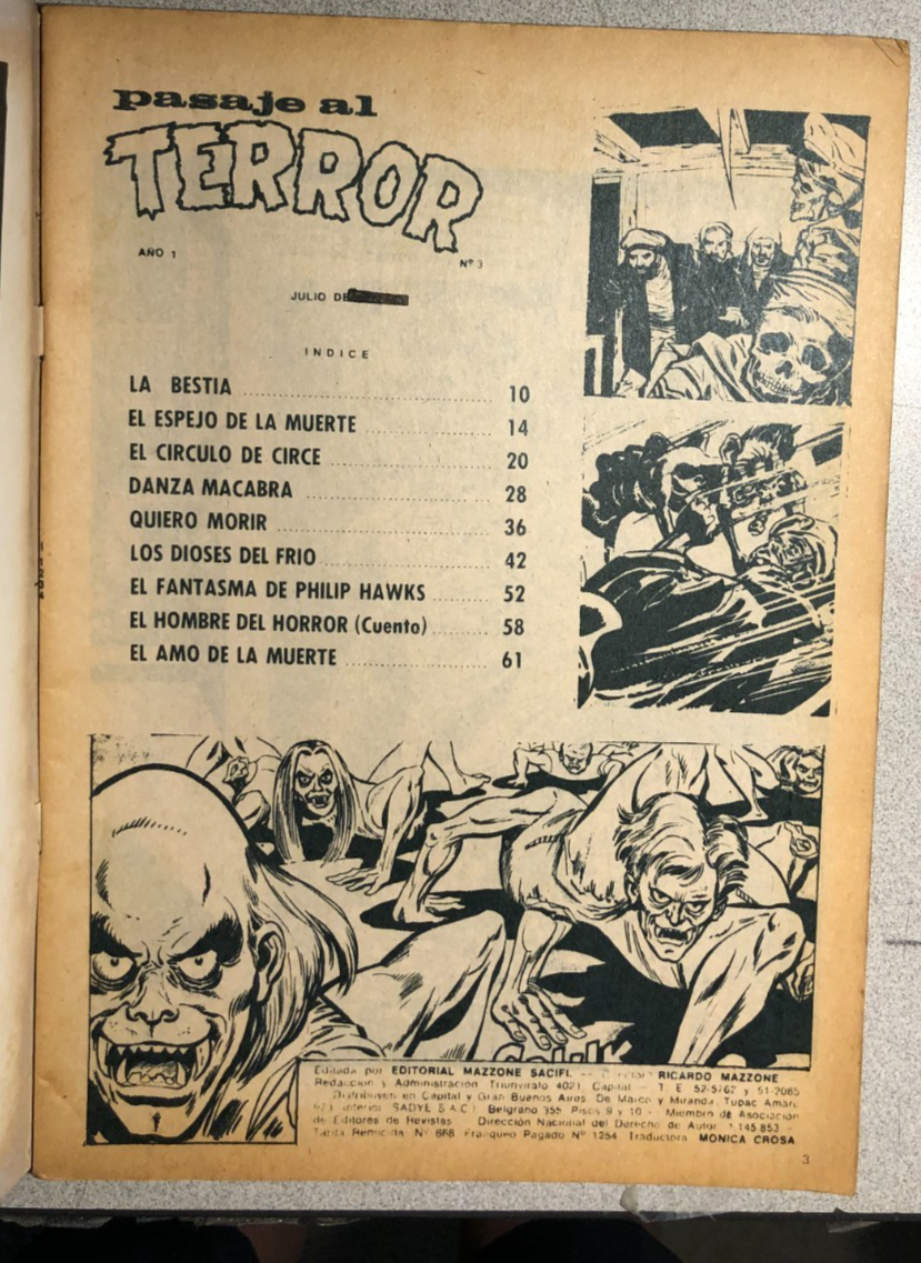 PASAJE AL TERROR #3 (1973) Argentina [Spanish language] B&W horror comics VG+
