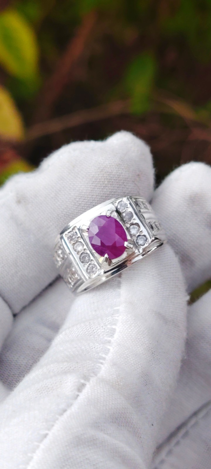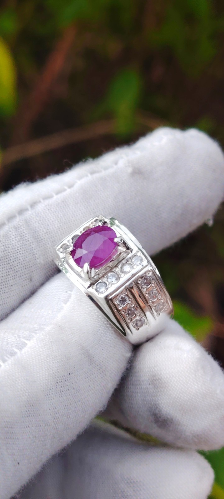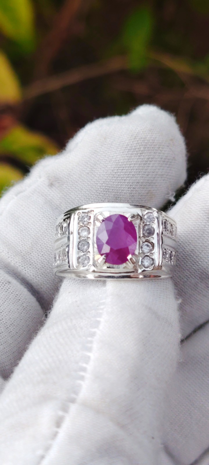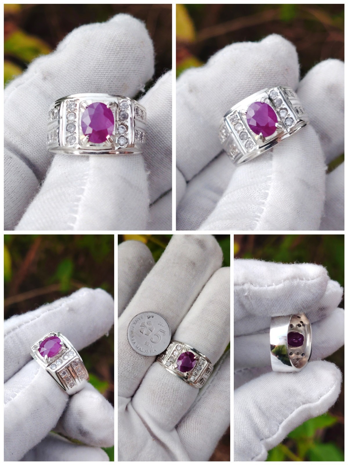 Natural Untreated Genuine Ruby, Guaranteed Tanzanian Origin Stone Weight: 2.16 Carats. Luster Stone oval Cut. Handmade Silver ring Setting. Size 20 Asia or 9 US (Resizable). Shipping Provided worldwide. If interested, you can purchase via. Thank you for your support! ?