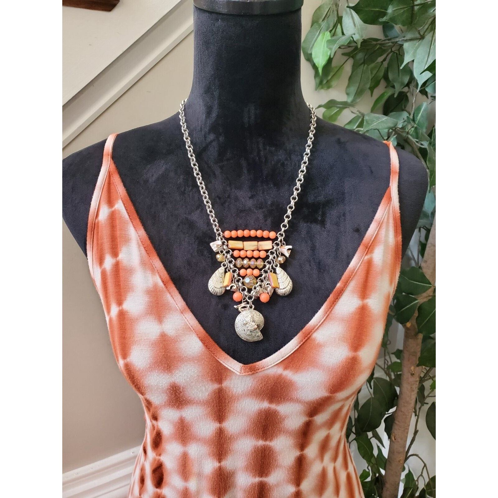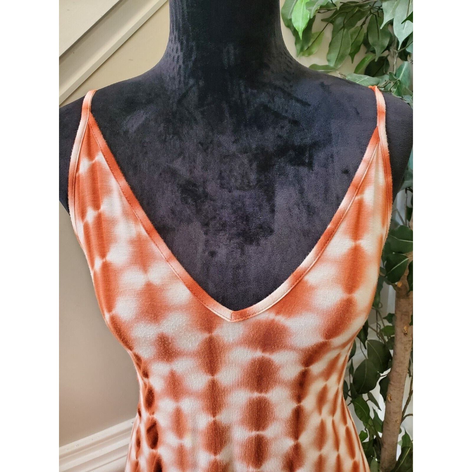 Audrey 3+1 Women Brown Tie Dye V-Neck Sleeveless Pullover Casual Dress Medium
