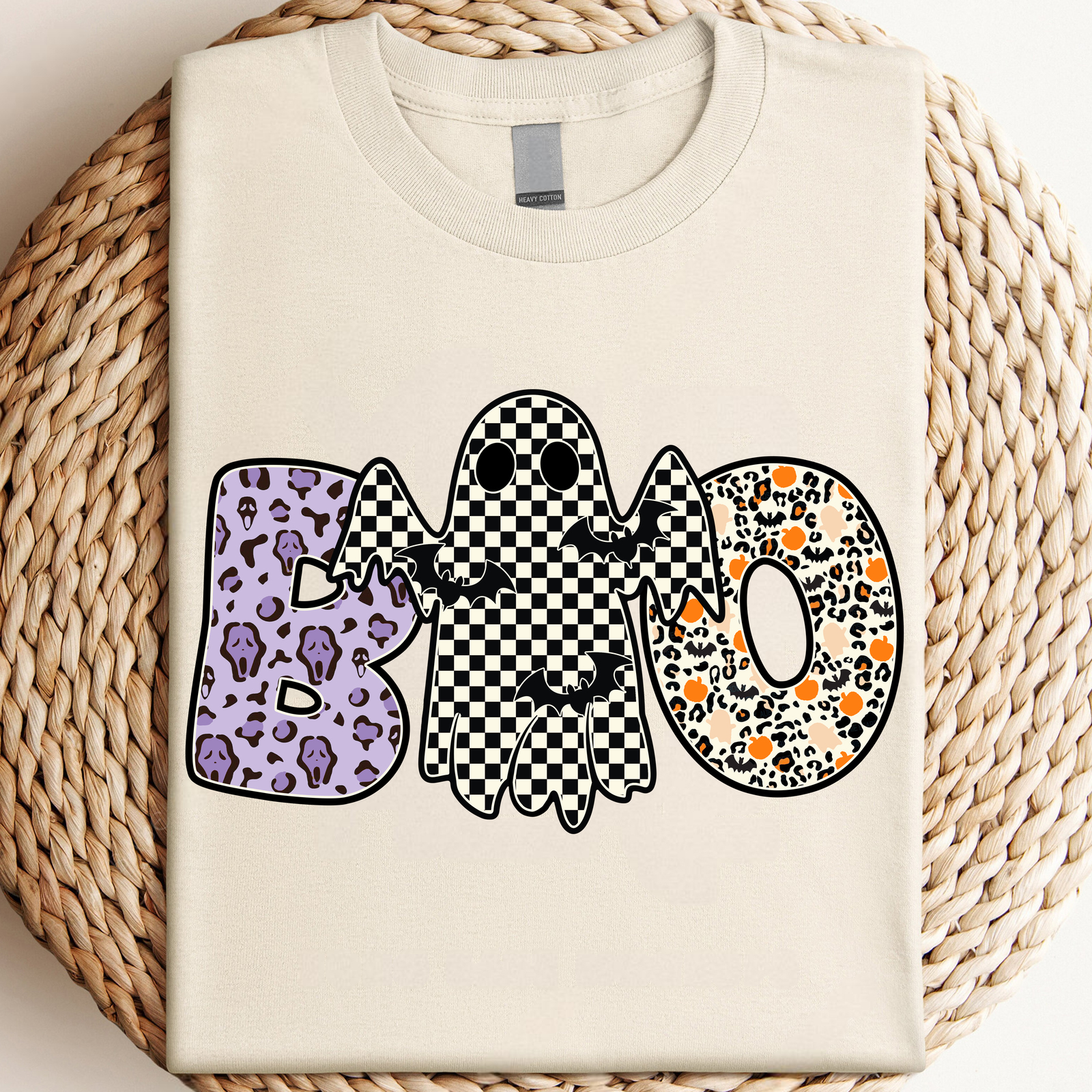 Checkered Boo Halloween PNG, Cute Boo Ghost PNG, Spooky Season PNG Shirt Design