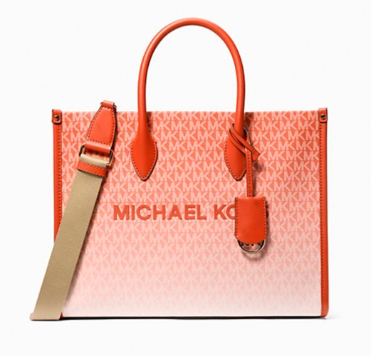 New Michael Kors Mirella Medium Ombré Logo Tote Bag Red Clay