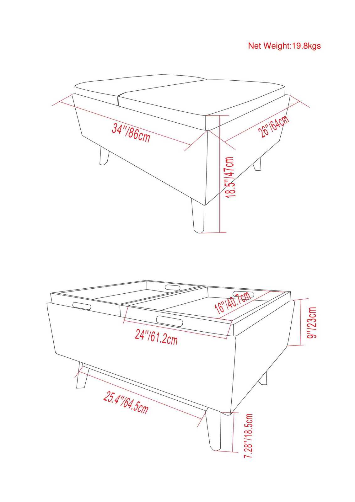 Multi-functional ottoman can be used in, living room, family room as a coffee table, foot stool, accent furniture or provide additional sitting