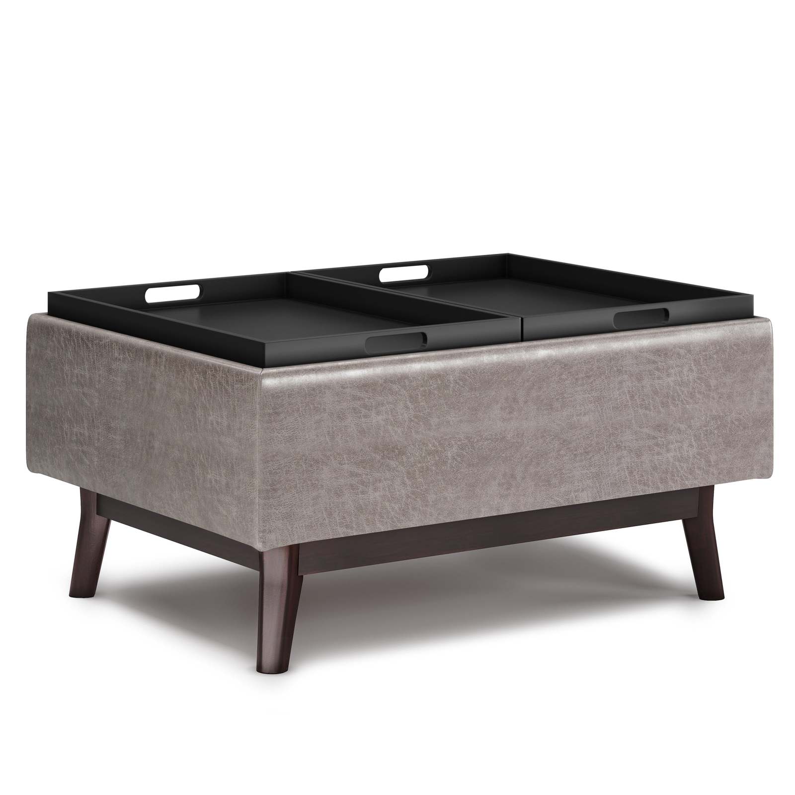 Distressed Grey Tray Top Small Coffee Table Ottoman Storage