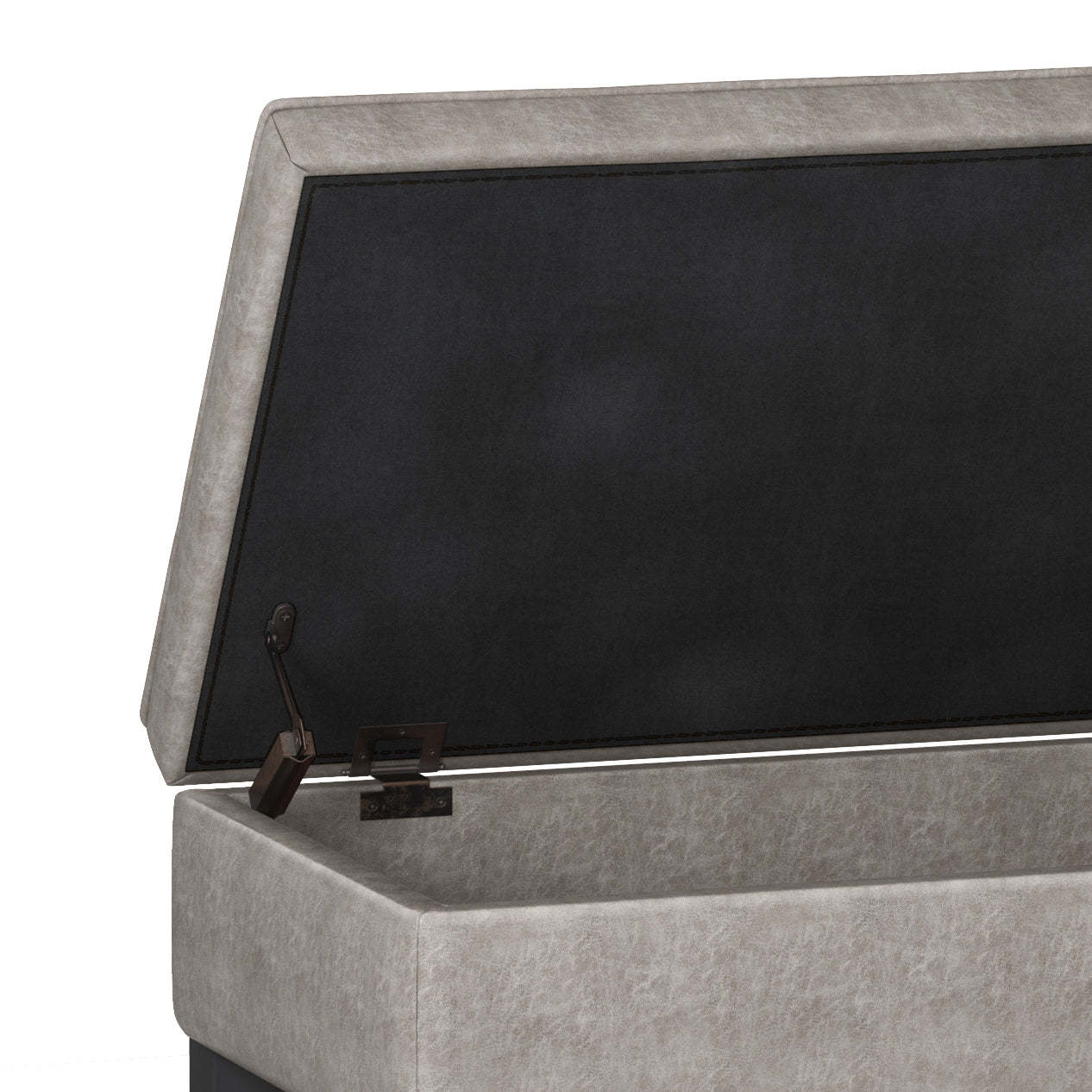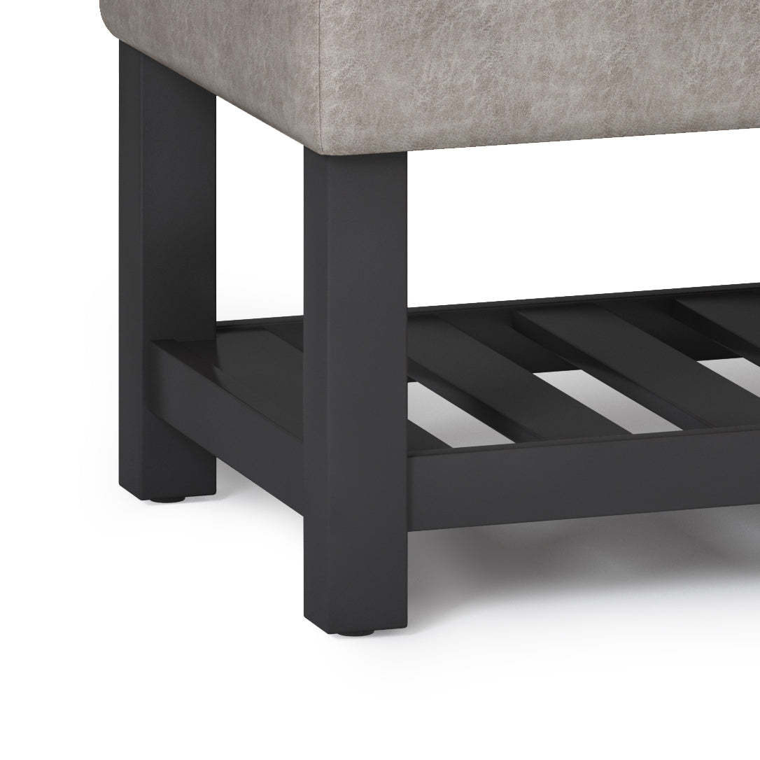 Upholstered with a durable Distressed Grey Taupe Vegan Faux Leather