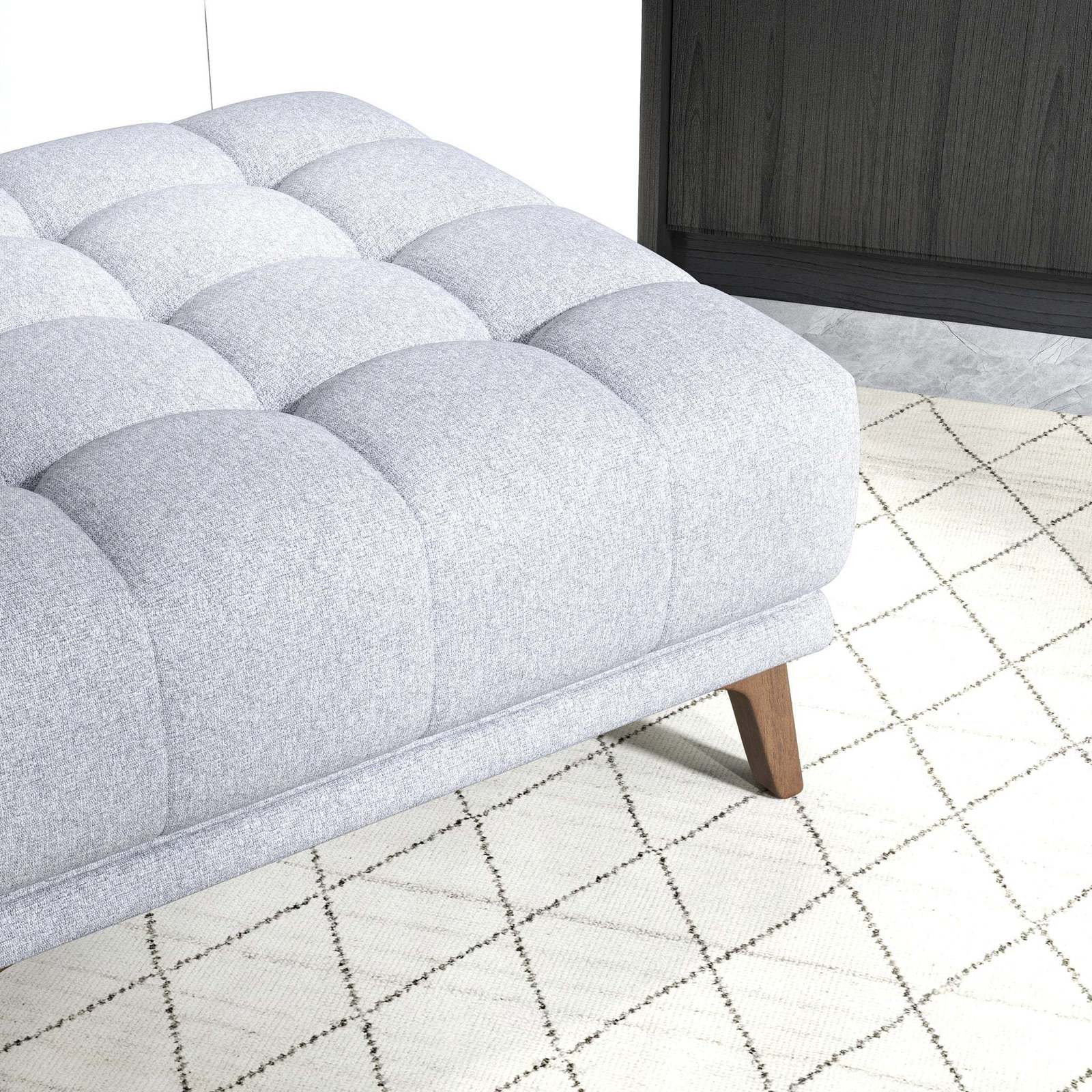 This ottoman is the perfect addition to any living room, serving as both a comfortable footrest and a versatile coffee table. Crafted with meticulous attention to detail, this ottoman features a tufted design that adds a touch of elegance to any space. The tufted upholstery enhances its visual appeal and provides a plush and comfortable seating experience.