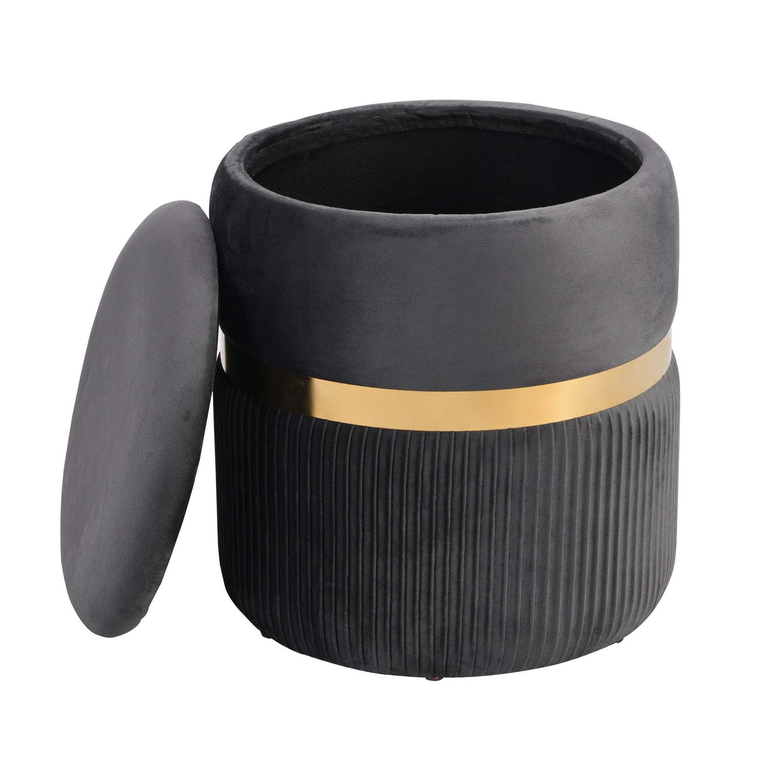 Techni Mobili Grey Velvet Round Storage Ottoman