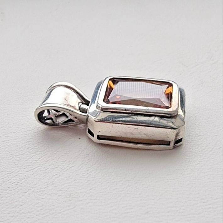 SIZE: APPROX. 1.25'' x3/4 ''BEATIFUL GIFT BOX INCLUDED!!! The CID vintage pendant features a stunning emerald-shaped citrine gemstone set in a 925 sterling silver bezel. The pendant exudes beauty with its charming design, perfect for adding a touch of elegance to any outfit. Crafted with high-quality materials, this piece showcases a classic style that is sure to stand the test of time. The combination of the silver metal and golden citrine creates a luxurious and eye-catching accessory that is ideal for those who appreciate fine jewelry.