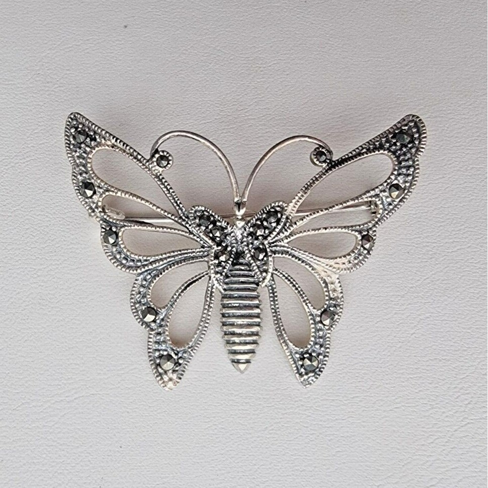 FAS VINTAGE 925 STERLING SILVER MARCASITE BUTTERFLY BROOCH AT