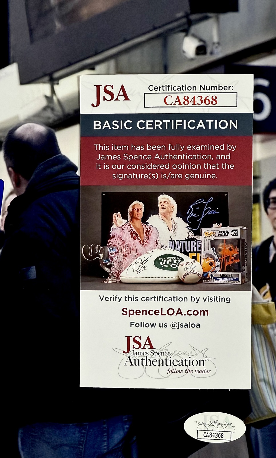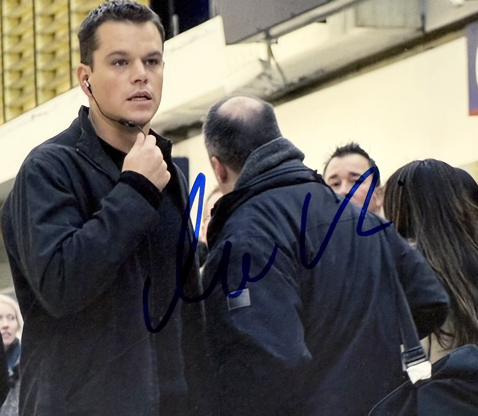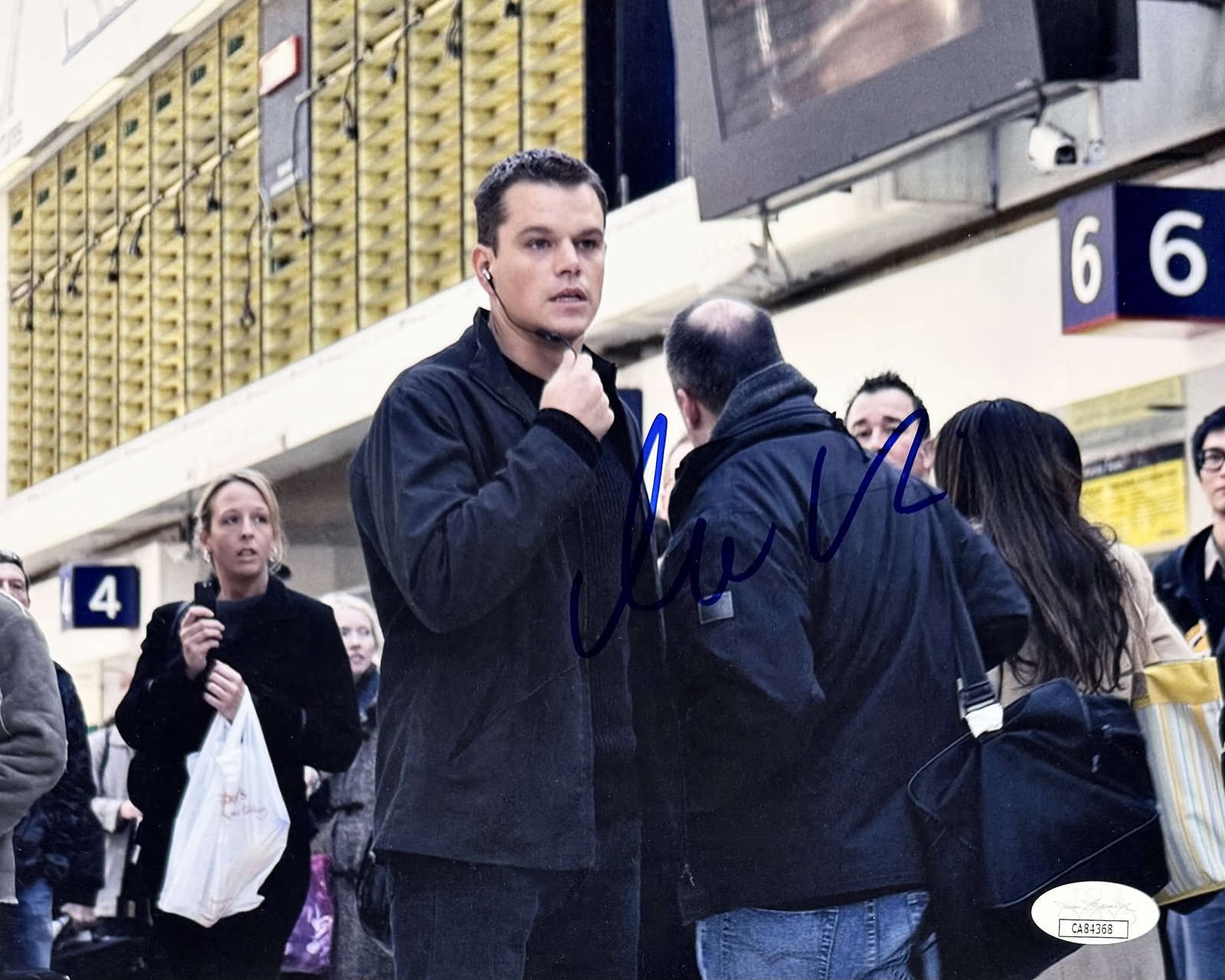 Matt Damon autographed 8"x10" photo from the 2007 film The Bourne Ultimatum signed in blue felt tip marker. This signature has been authenticated by JSA James Spence authentication Certification Number: CA84368 and will come with the matching cert card seen in the scans. He is an American actor, producer, and screenwriter. He won an Academy Award for Best Original Screenplay for co-writing Good Will Hunting (1997) with Ben Affleck, and was nominated for Best Actor for his performance in the same film. Movies include Good Will Hunting (1997), Jason Bourne (2016), The Martian (2015), The Odyssey (2026), The Bourne Identity (2002), Interstellar (2014), The Departed (2006), Ford vs. Ferrari (2019), Ocean's Eleven (2001), Saving Private Ryan (1998), The Talented Mr. Ripley (1999), Euro Trip (2004), The Great Wall (2016), Oppenheimer (2023), The Bourne Supremacy (2004), We Bought a Zoo (2011), Downsizing (2017), The Bourne Ultimatum (2007), The Last Duel (2021), Elysium (2013), Air (2023), The Investigators (2024), Stillwater (2021), Rounders (1998), The Rainmaker (1997), Dogma (1999), The Adjustment Bureau (2011), Mystic Pizza (1988), Ocean's Twelve (2004), Green Zone (2010), Contagion (2011), The Legend of Bagger Vance (2000), True Grit (2010), Ocean's Thirteen (2007), Invictus (2009), Behind the Candelabra (2013), The Good Shepherd (2006), The Accountant 2 (2025), Thor: Ragnarok (2017), School Ties (1992), Hereafter (2010), Deadpool 2 (2018), Suburbicon (2017), Spirit: Stallion of the Cimarron (2002), The Informant! (2009), Ponyo (2008), Syriana (2005), All the Pretty Horses (2000), The Brothers Grimm (2005), The Rip (2025), and The Monuments Men (2014). This photo will come in a clear hard top load for display. Buy with confidence we have been selling autographs since 1992.
