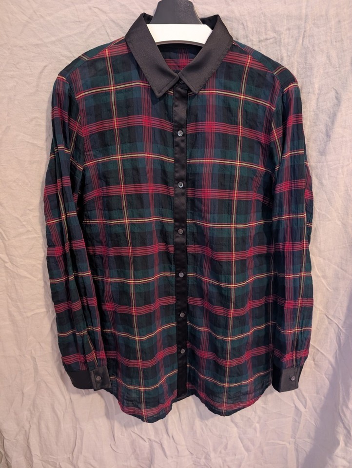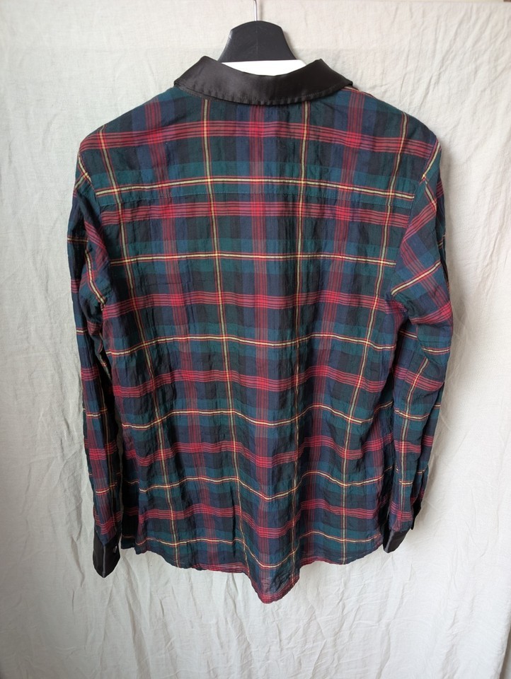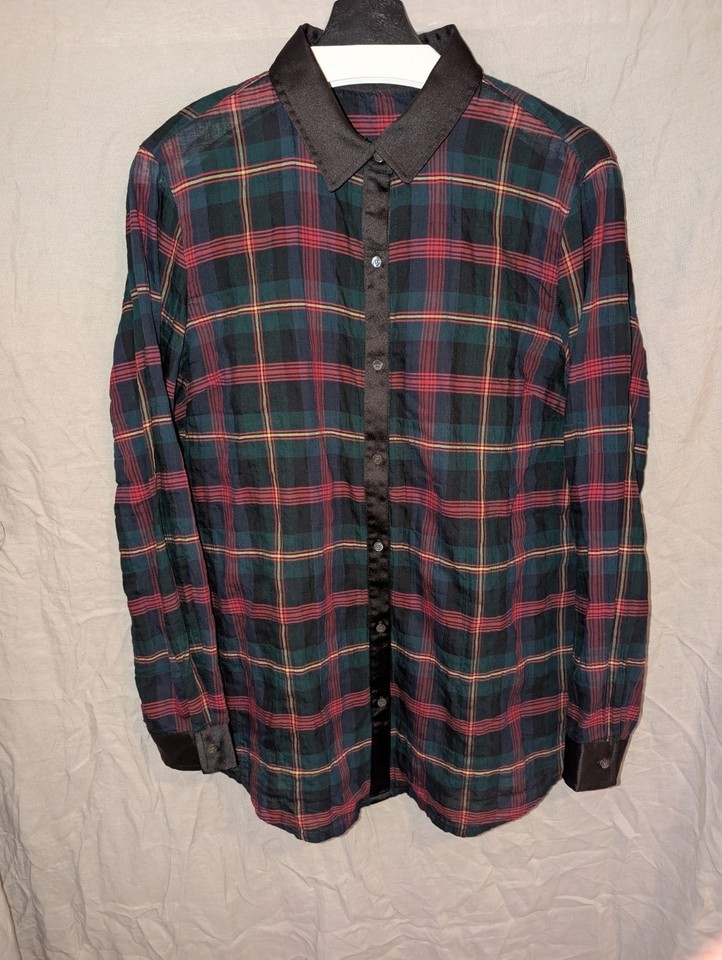 J McLaughlin Womens Large Plaid Soft Button Up Shirt Cotton Satin Trim Holiday