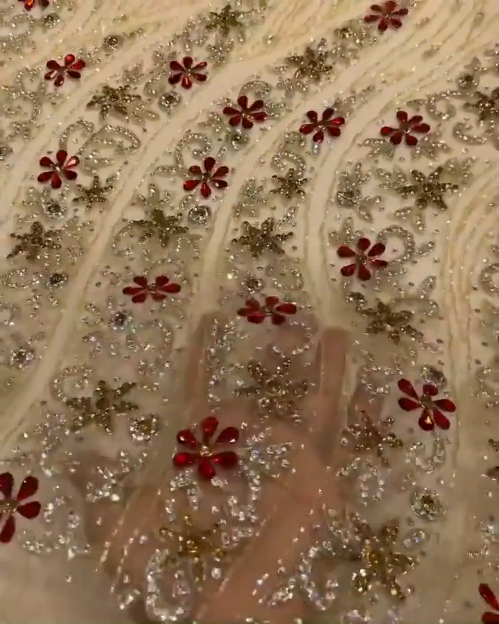 Classy Beaded lace Fabric Material for Elegant Bridal fabric by the yard