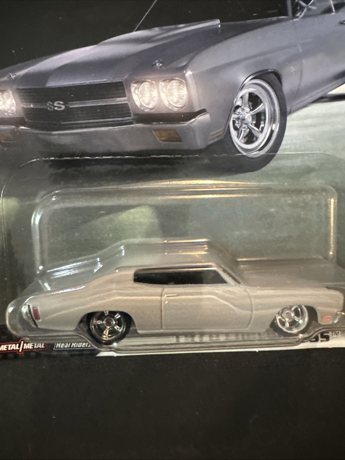 The Hot Wheels Premium 2024 Fast Furious 1970 Chevelle SS 1:64 Real Riders is a highly detailed diecast model car featuring the iconic Chevy Chevelle SS from the popular Fast Furious movie franchise. This 1:64 scale replica is a must-have for collectors and fans of the series, with a sleek gray color and accurate representation of the classic vehicle. The inclusion of real riders adds an extra level of authenticity to the model, making it a standout addition to any diecast car collection.