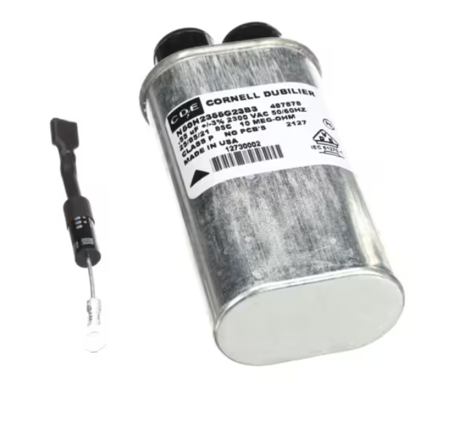 Amana Menumaster N50H2355G23B3, 487878 Diode and Capacitor Kit, 0.55uF ? OEM High-Voltage Microwave Component is a genuine replacement kit designed for use in commercial microwave ovens. Featuring a 0.55 microfarad (uF) capacitor paired with a matching high-voltage diode, this kit provides safe and efficient energy storage and discharge during magnetron operation. Ideal for restoring full heating function and ensuring long-term microwave performance.