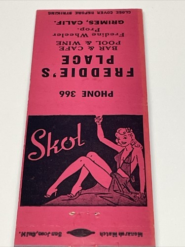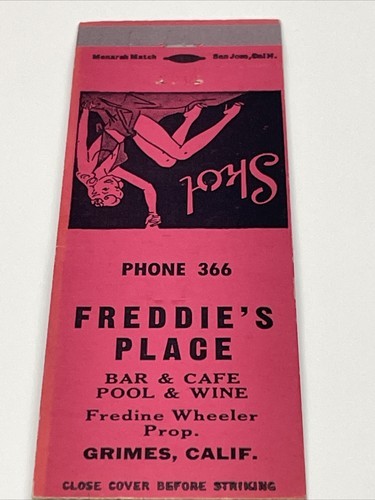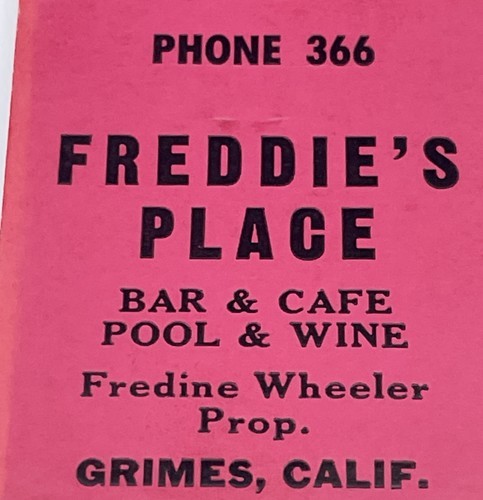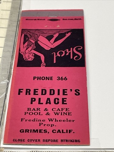 Matchbook Cover Freddie’s Place Bar - Cafe Pool & Wine Grimes, CA Unstruck gmg